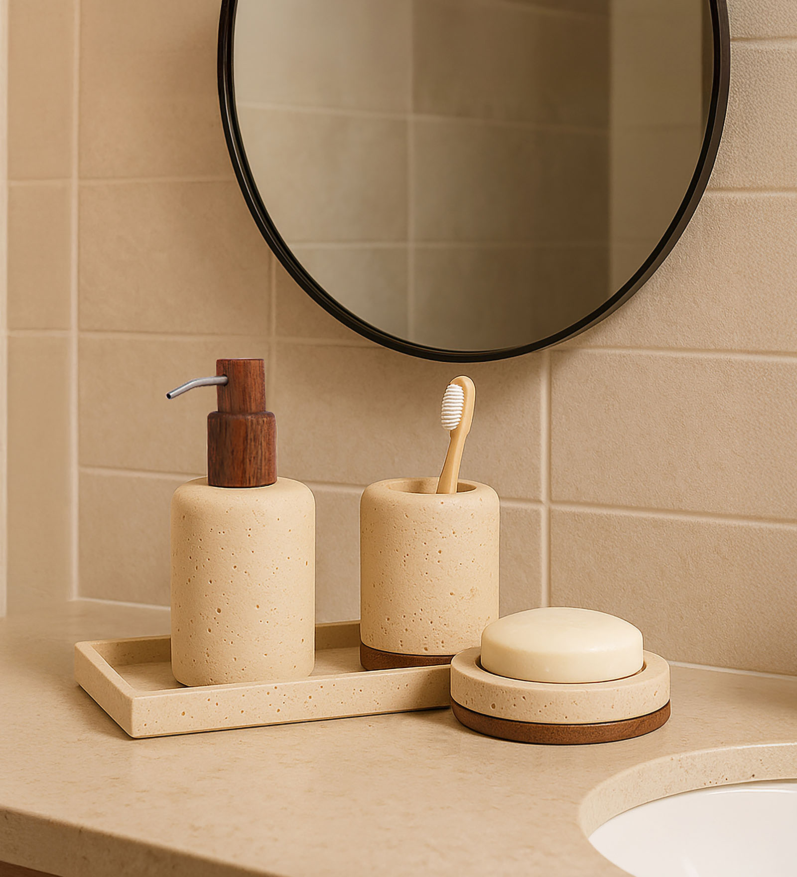 Vibe 3Pcs Bathroom Set Polyresin Bath Sandstone