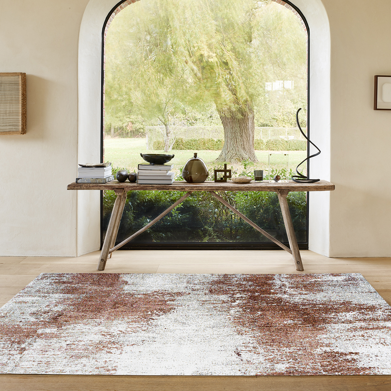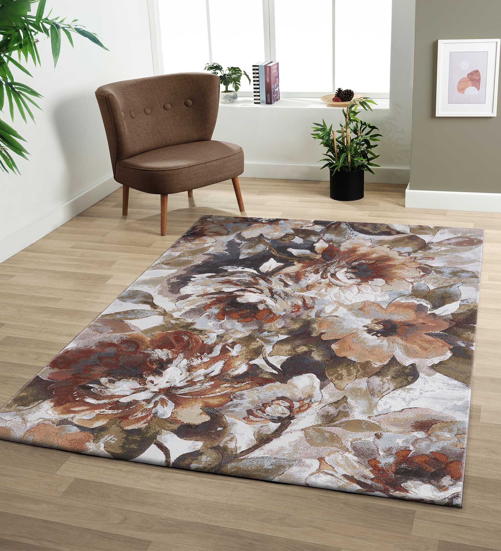 Aquarius Floral Machine Made Carpet Cream and Rust