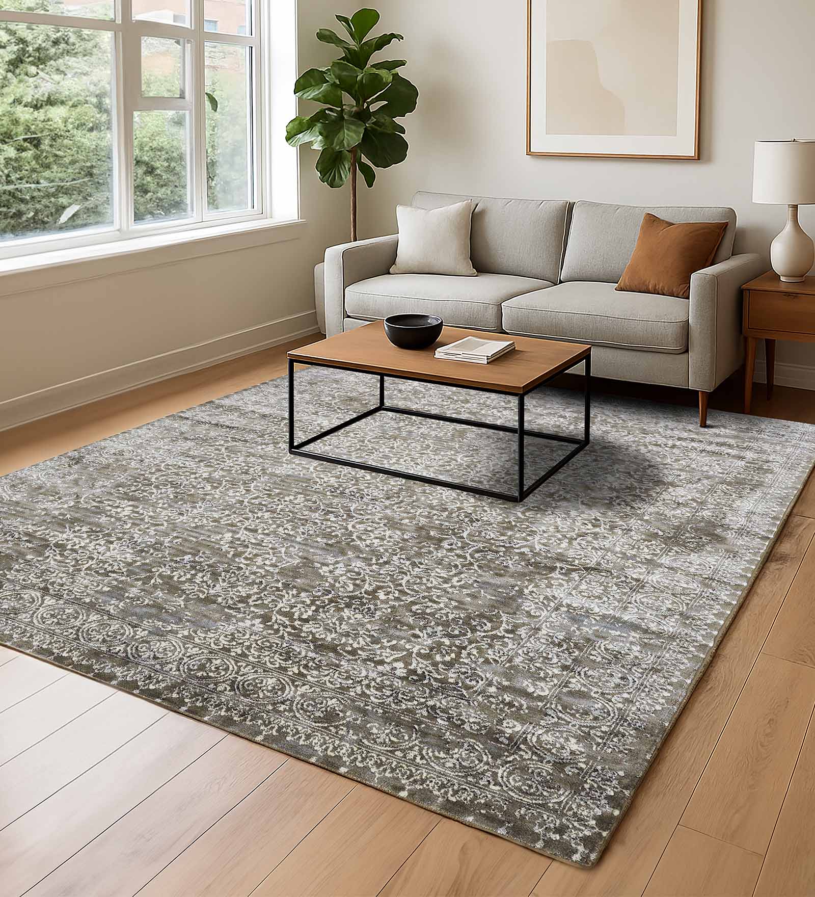 Aldo Green Garden Neo Classical Carpet M.Grey