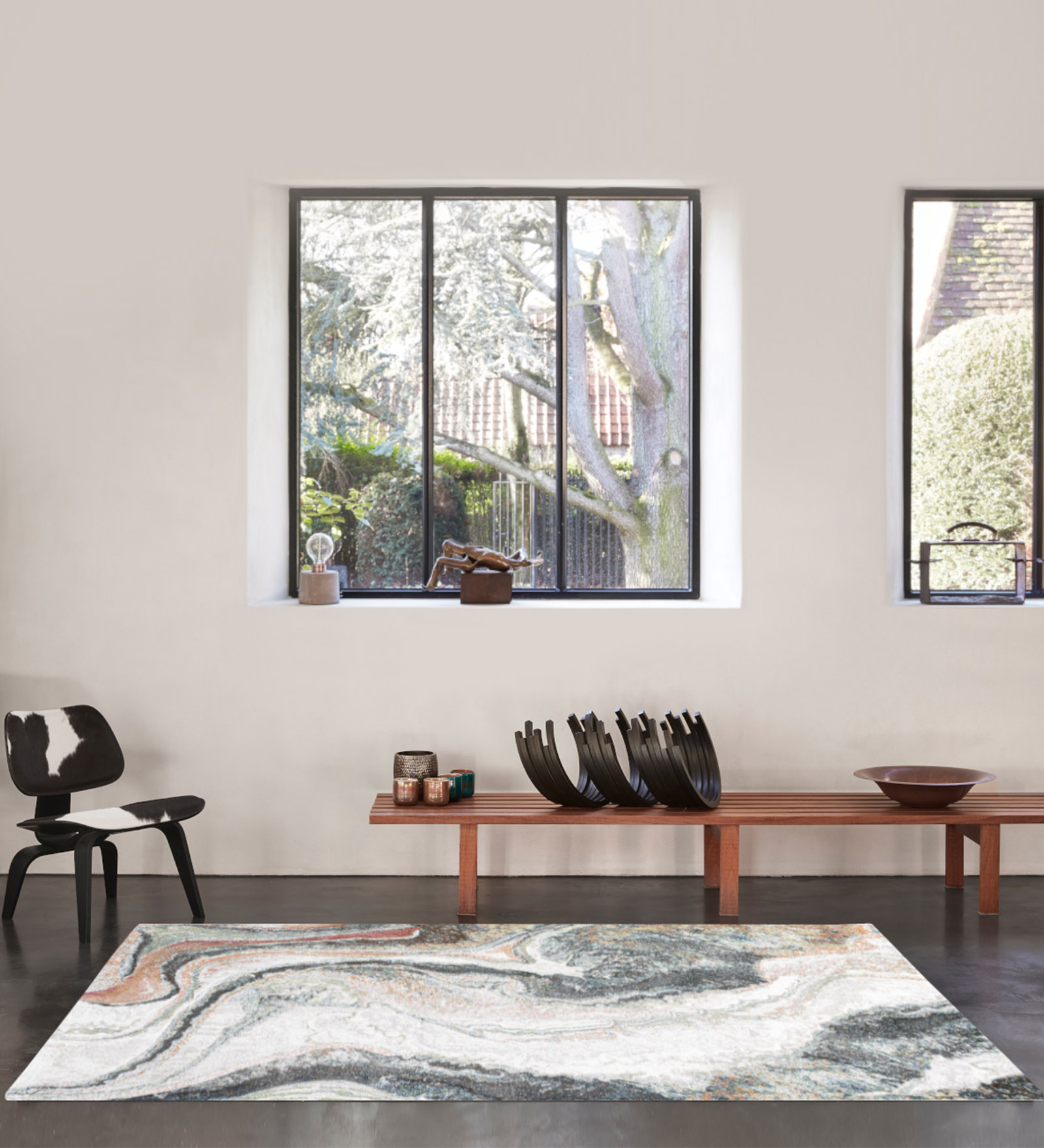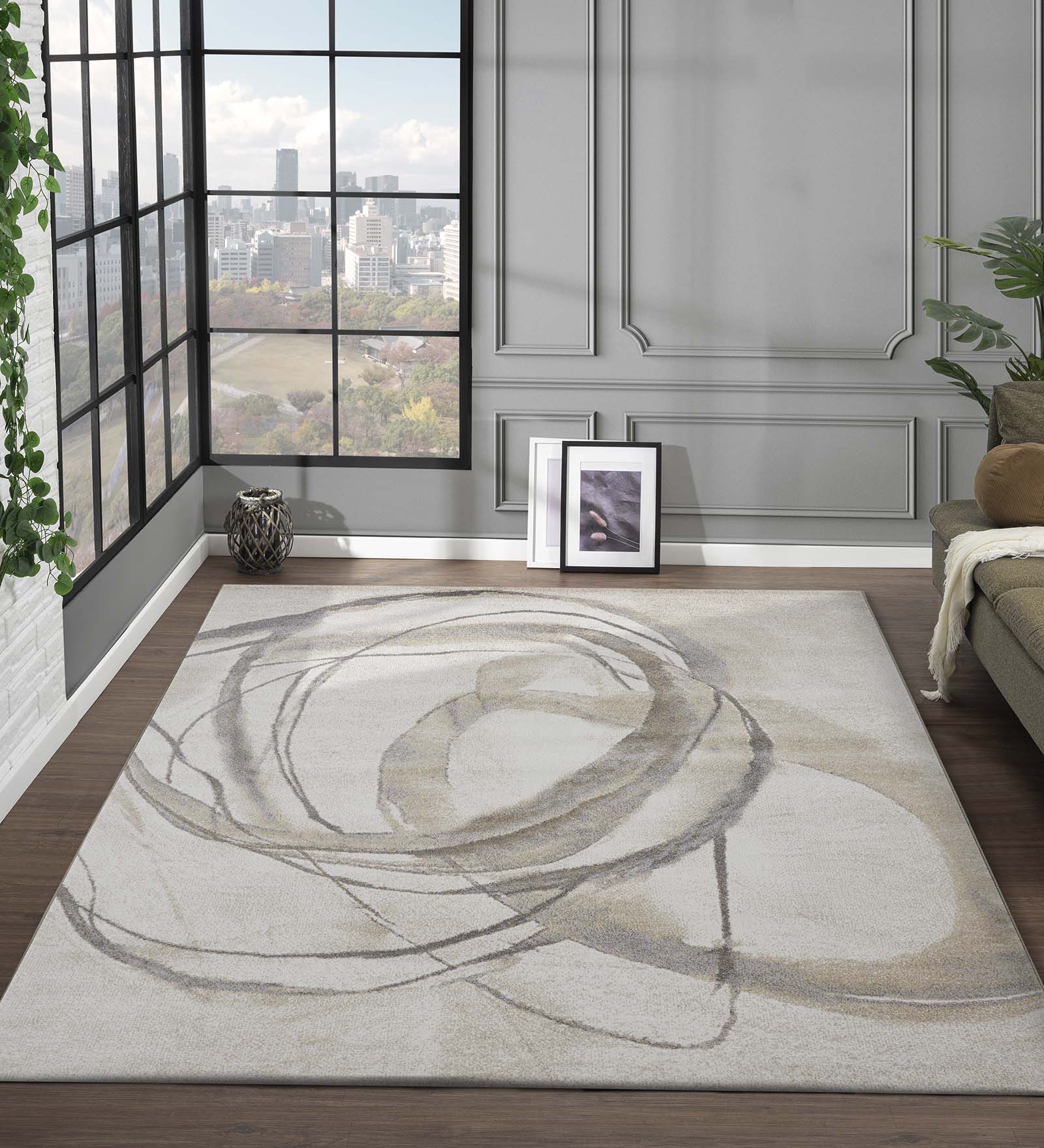 Aquarius Abstract Machine Made Carpet Cream and D Grey