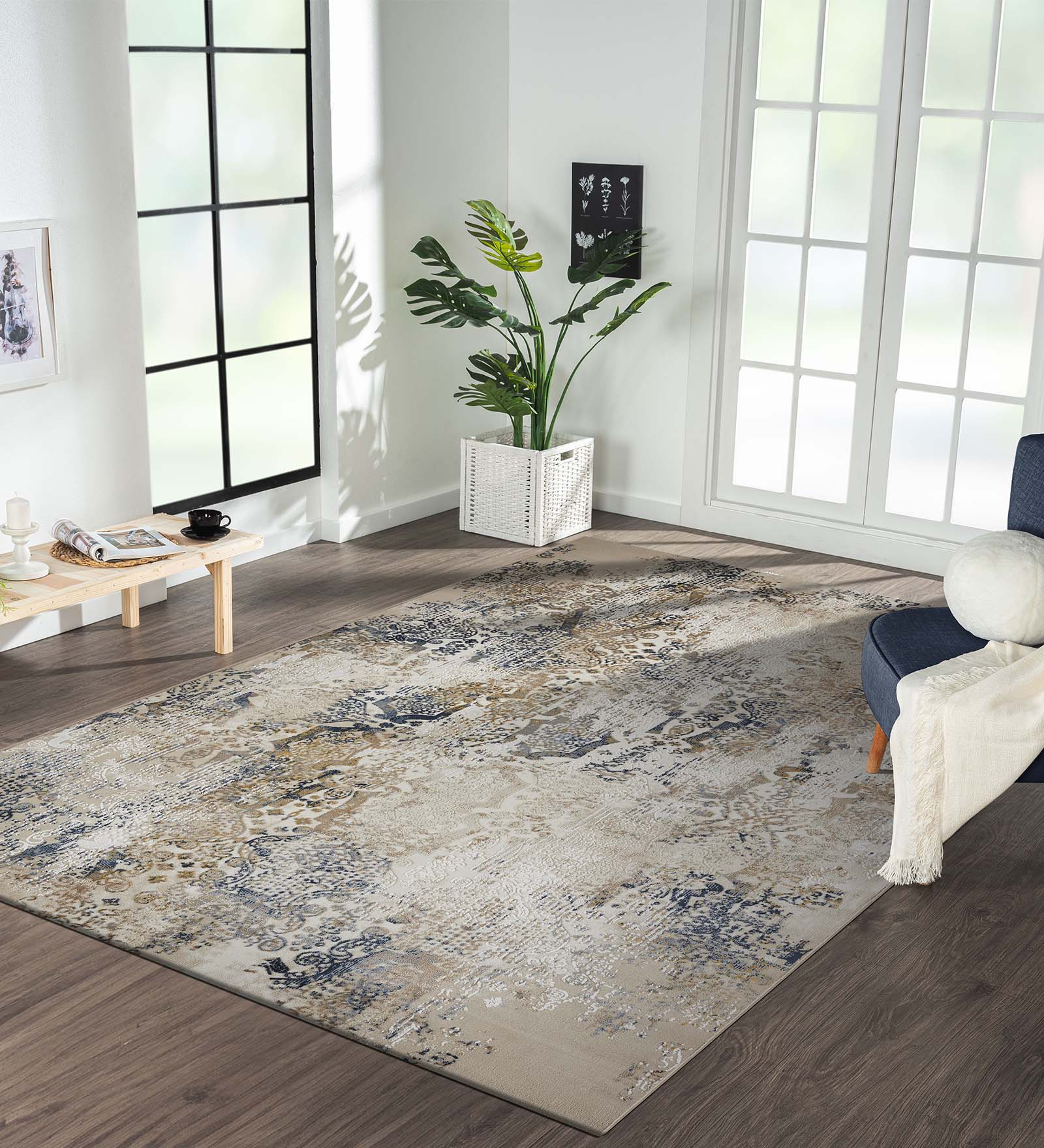 Seher Abstract Machine Made Carpet Beige Navy