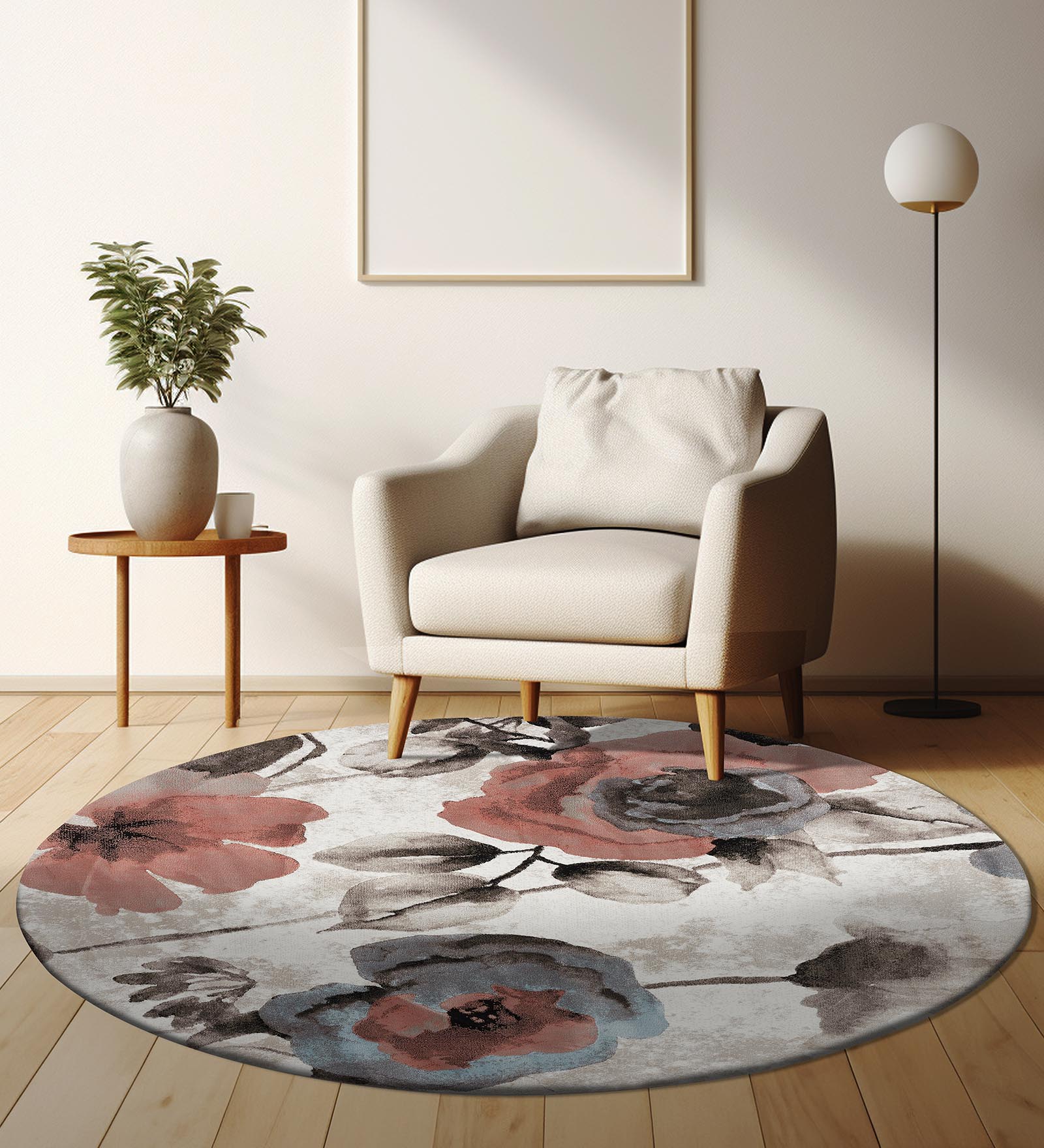 Alan Geometric Round Shaped Carpet Grey and Blue