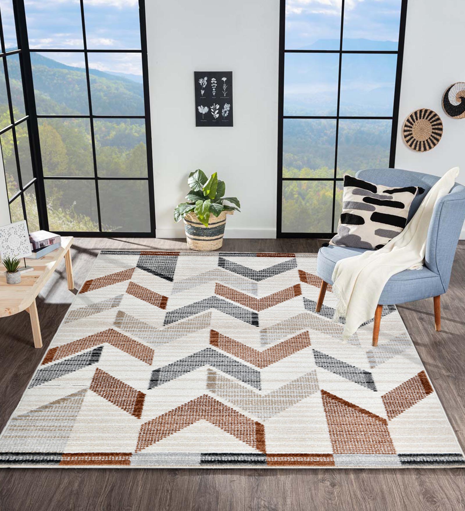 Nepal Abstract Machine Made Carpet Cream and Brown