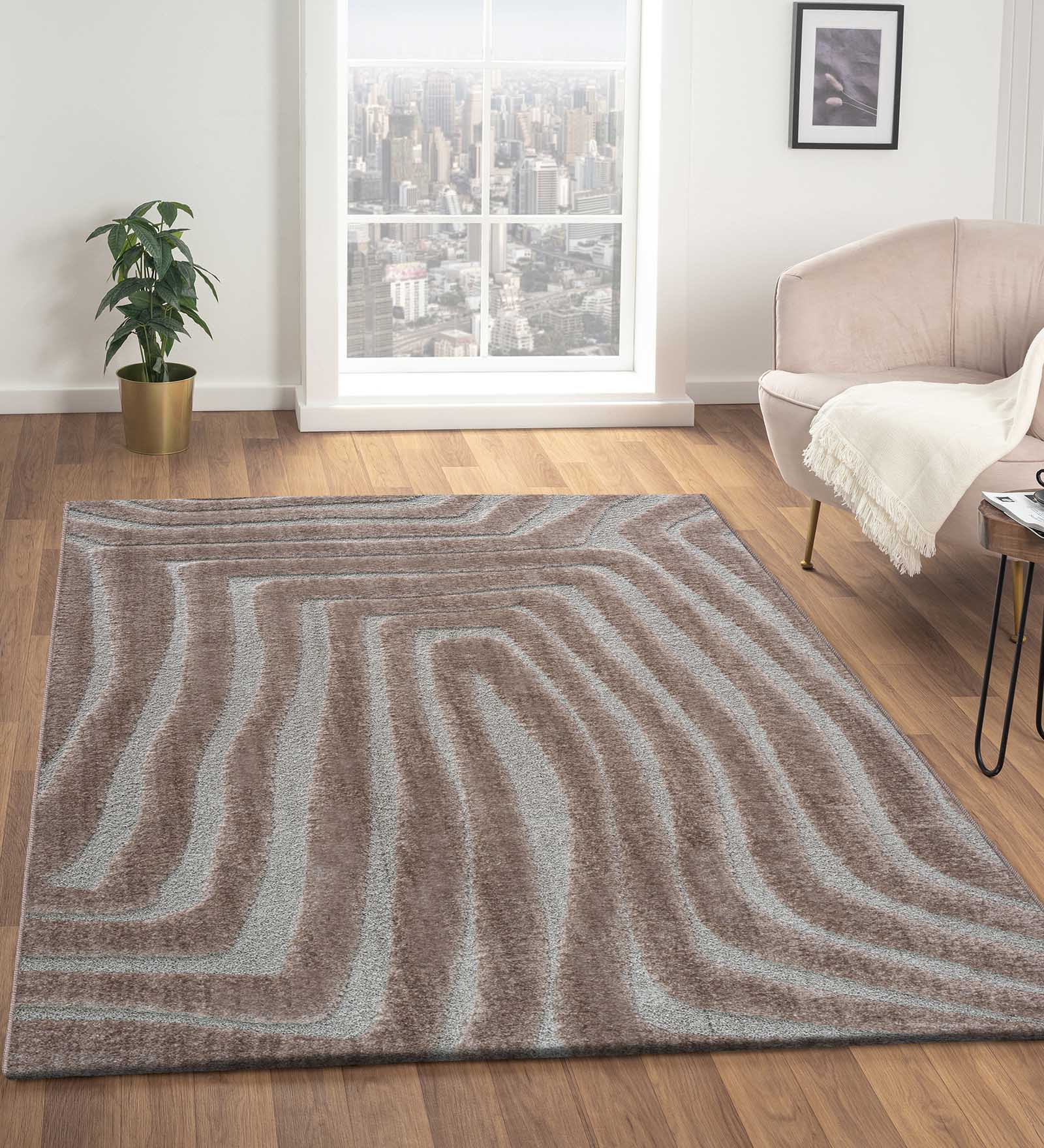Husky Pin Striped Diamond Shaggy Carpet Cream