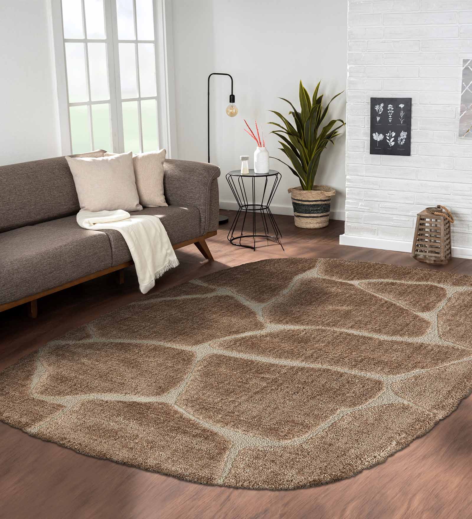 Flamme Abstract Round Shaped Carpet Blue and Taupe
