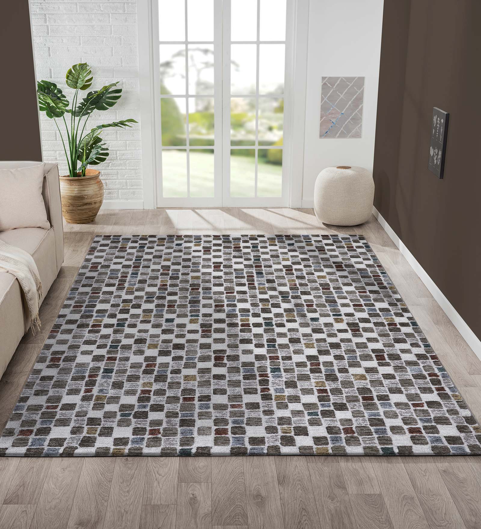 Mehari Polypropylene Shaggy Carpet Grey and Beige