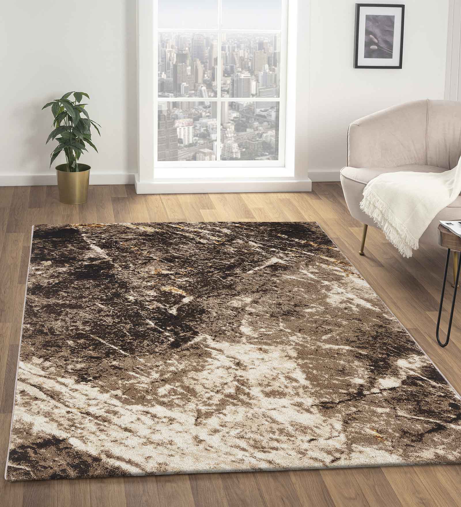 Reverie Abstract Machine Made Carpet Brown and Beige