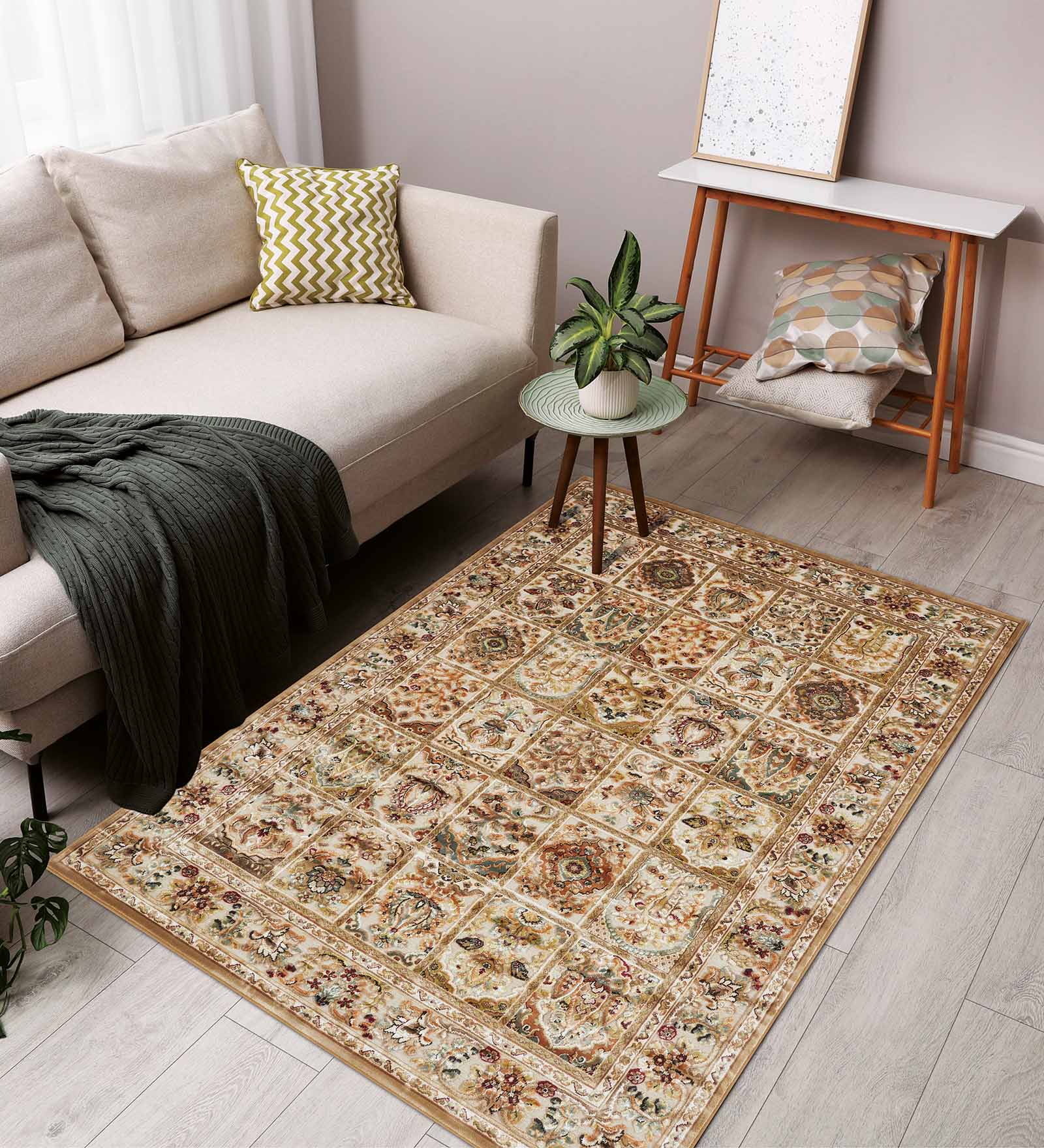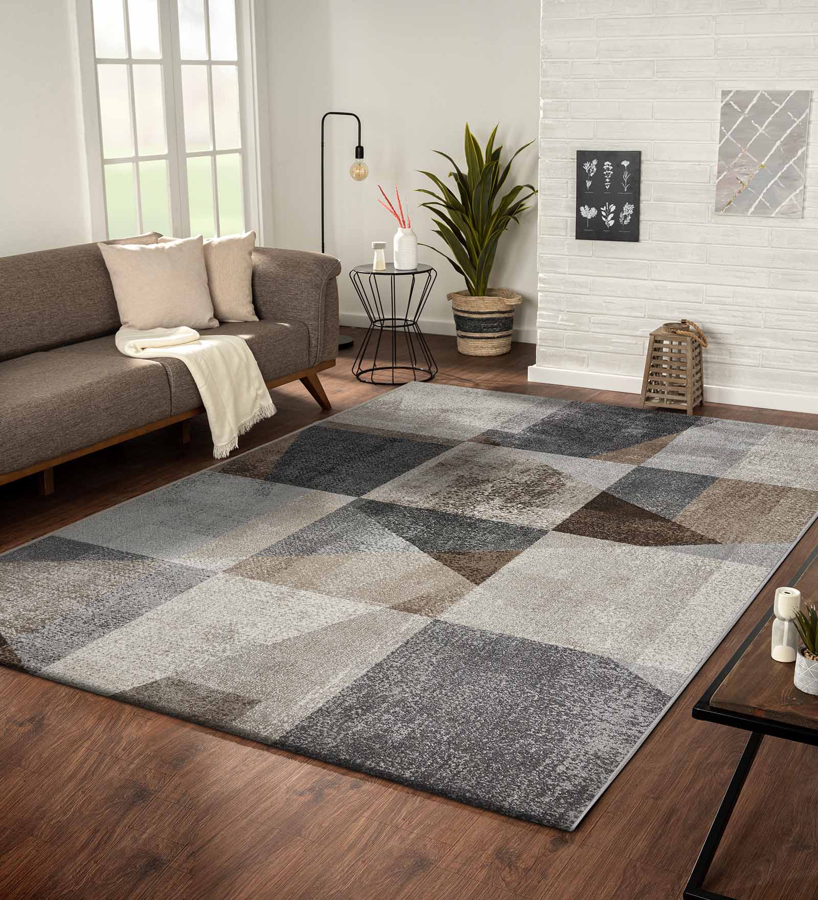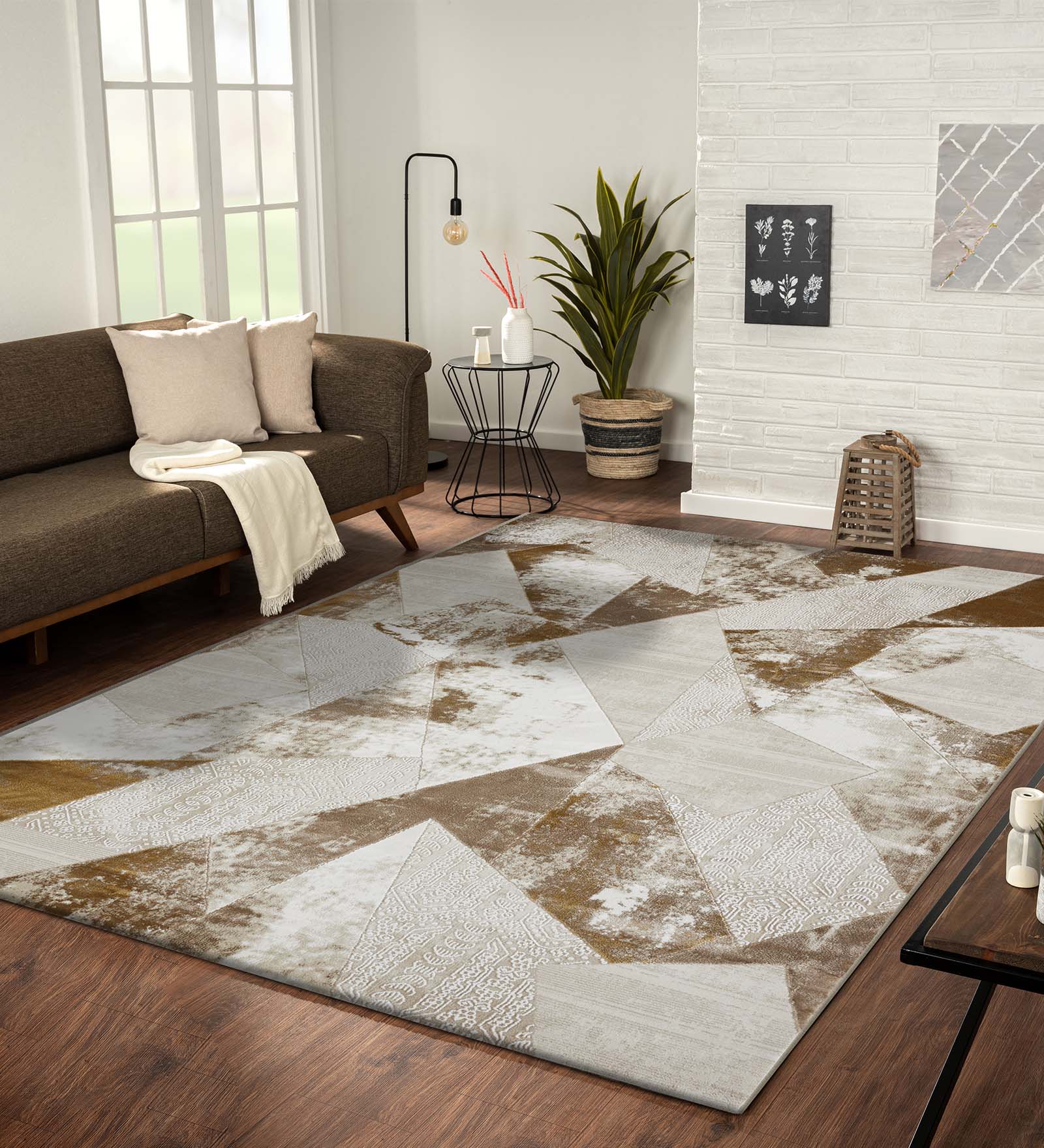 Diamond Geometric Machine Made Carpet L Brown and Cream