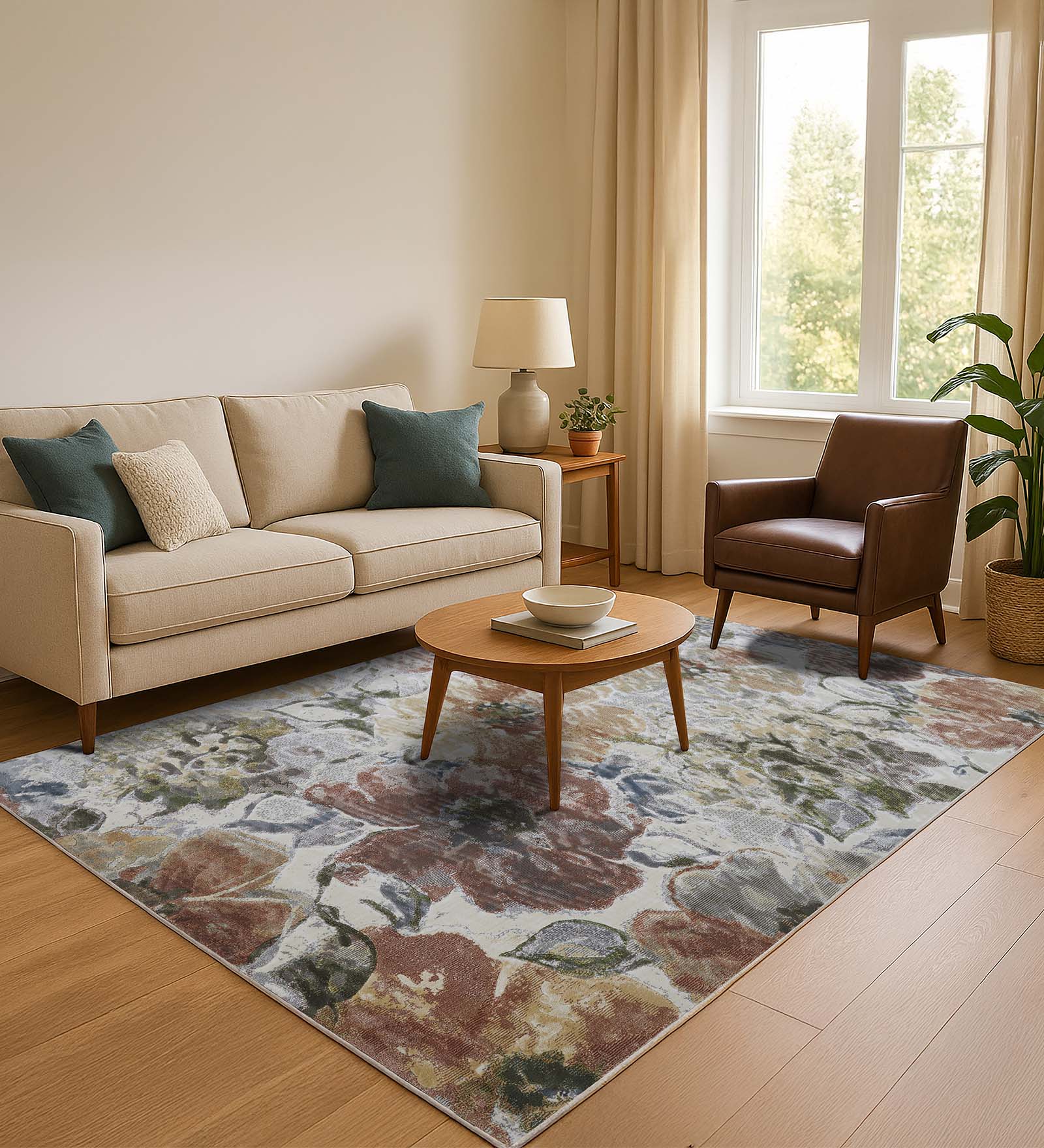 Genova Floral Carpet L.Brown