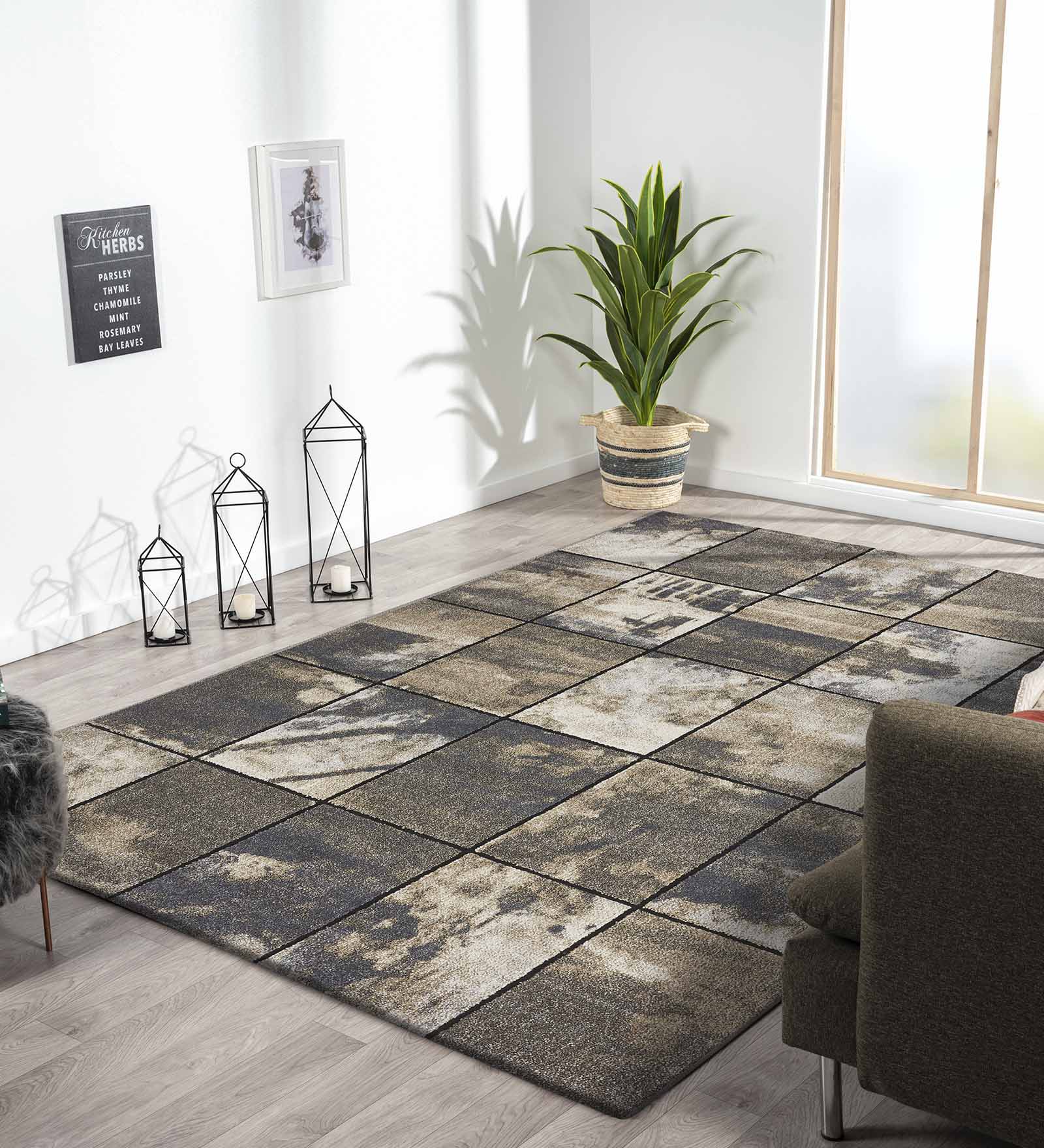 Diamond Polypropylene Abstract Carpet Blue and D.Grey
