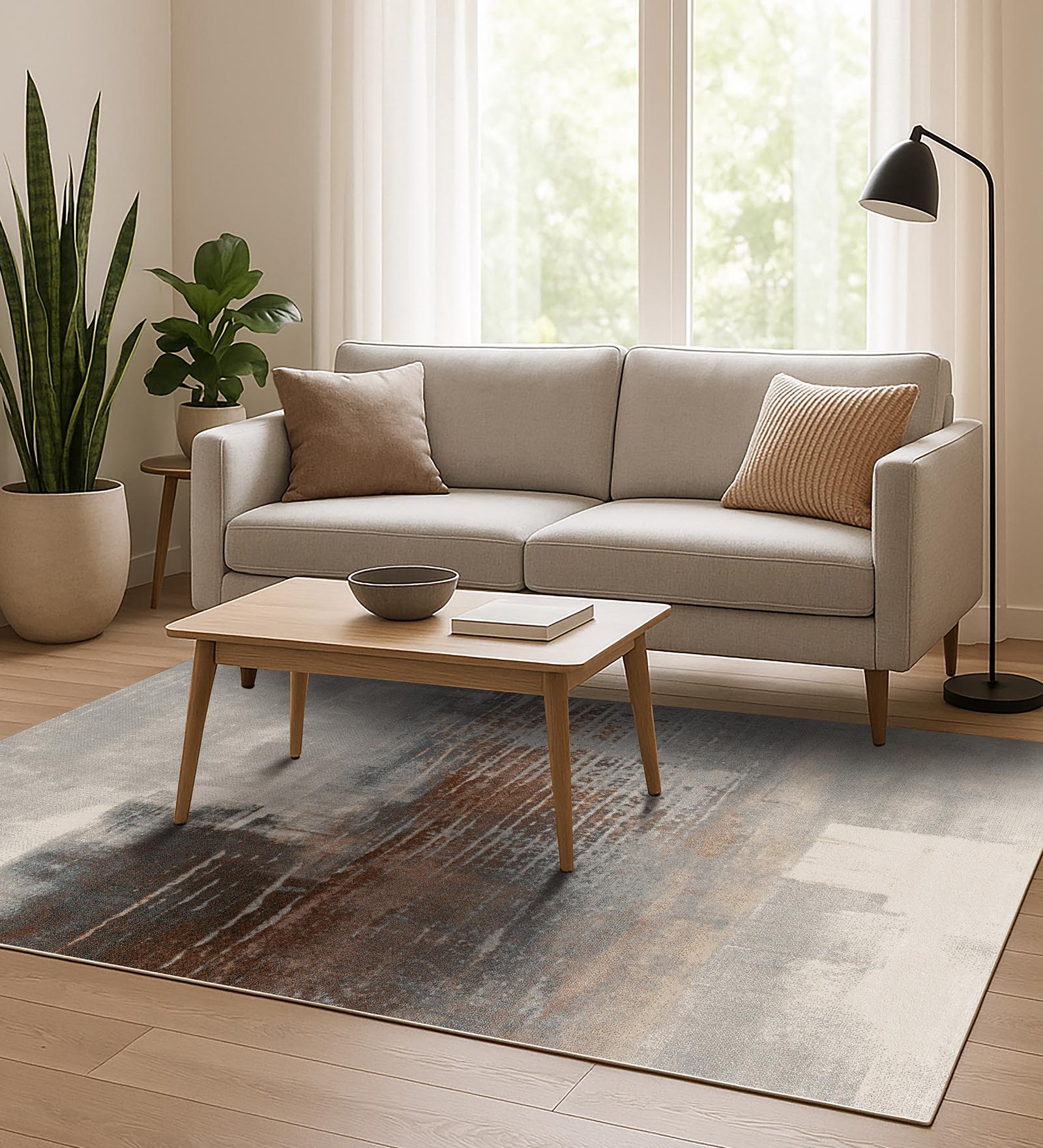 Reverie Abstract Machine Made Carpet Brown and Grey