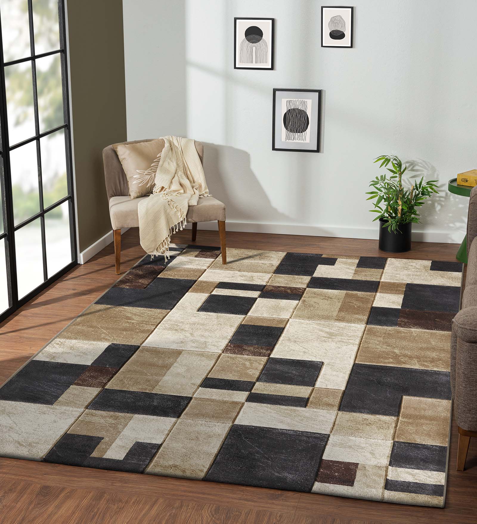 Reverie Abstract Machine Made Carpet Brown and Beige