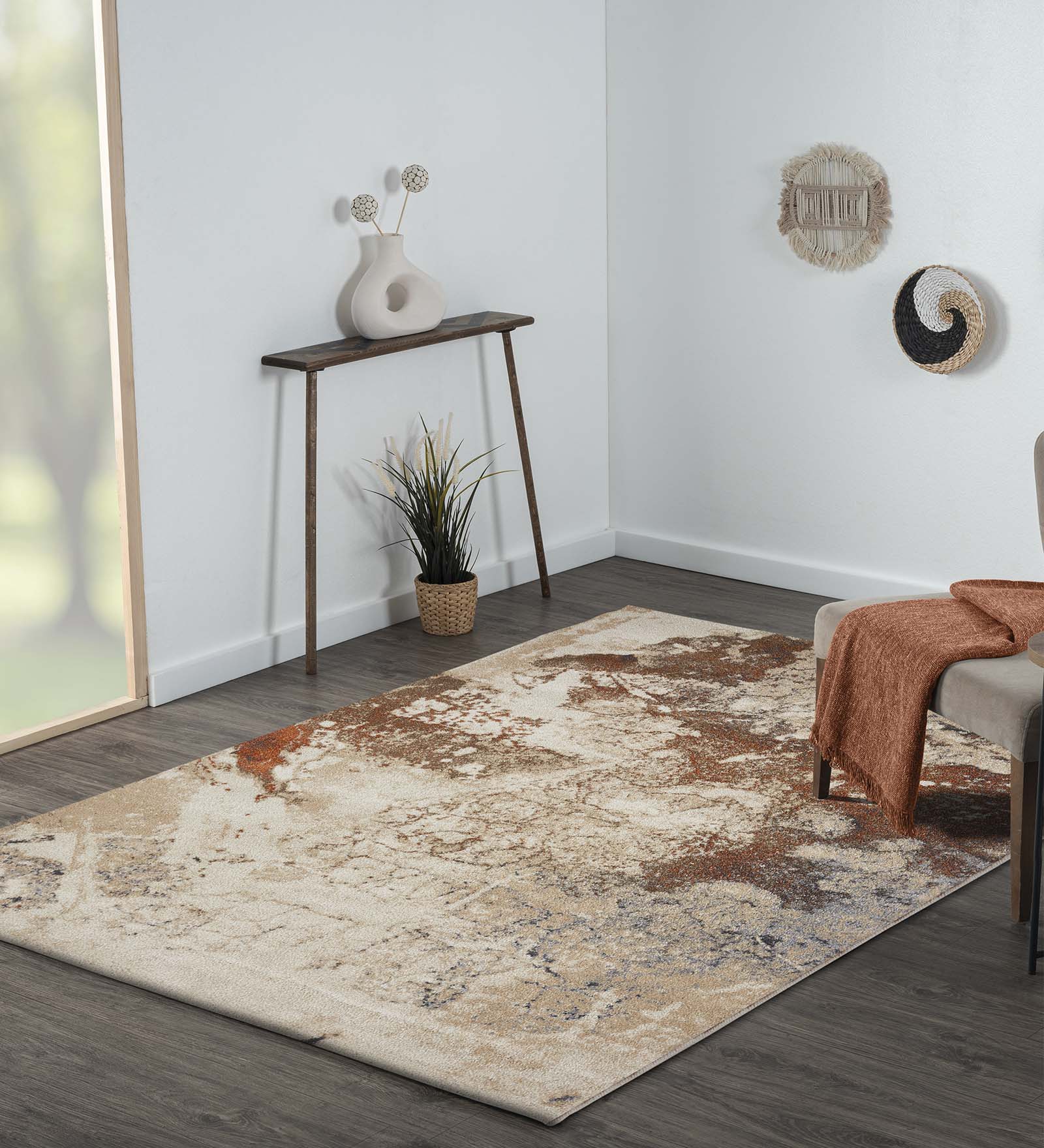 Omaxe Abstract Carpet Rust and Beige