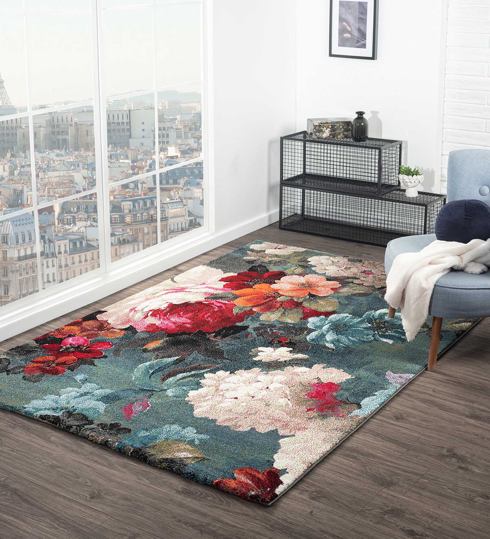 Diamond Floral Machine Made Carpet Blue and Maroon