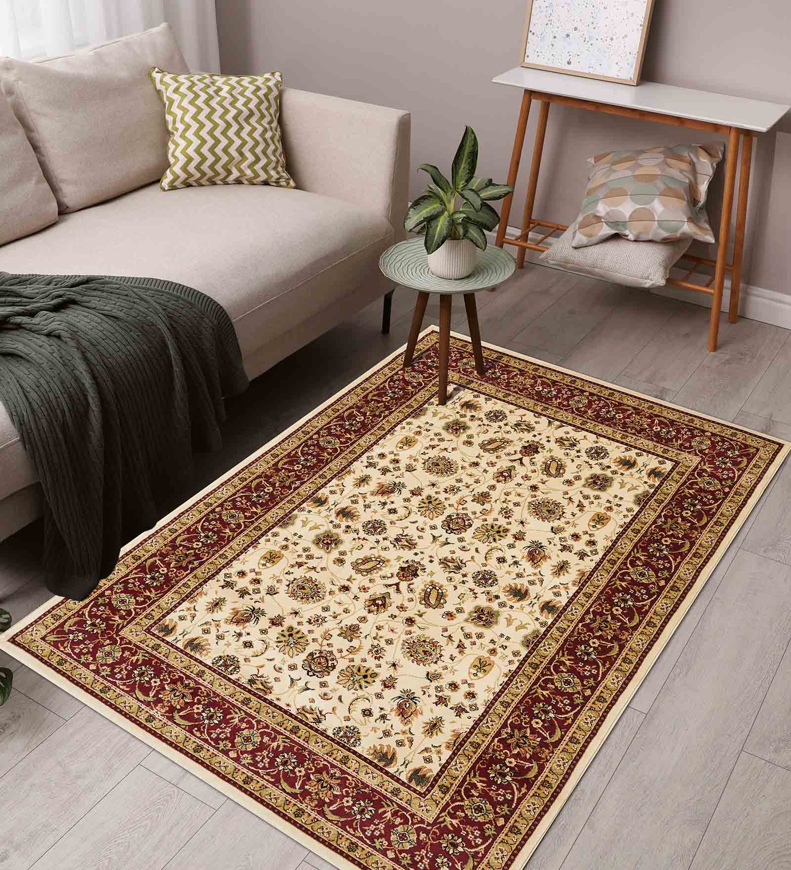 Esfahan Classical Carpet Cream and Red