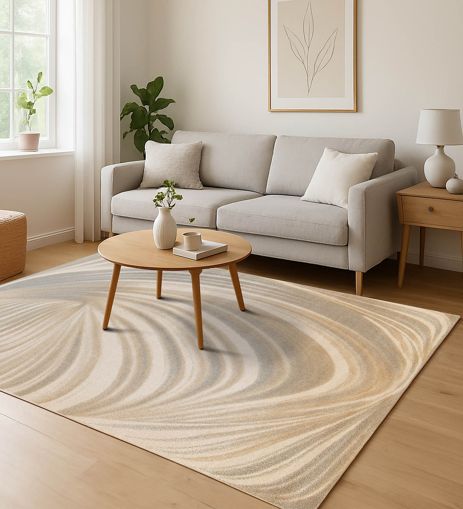 Flamme Abstract Round Shaped Carpet Cream Rust