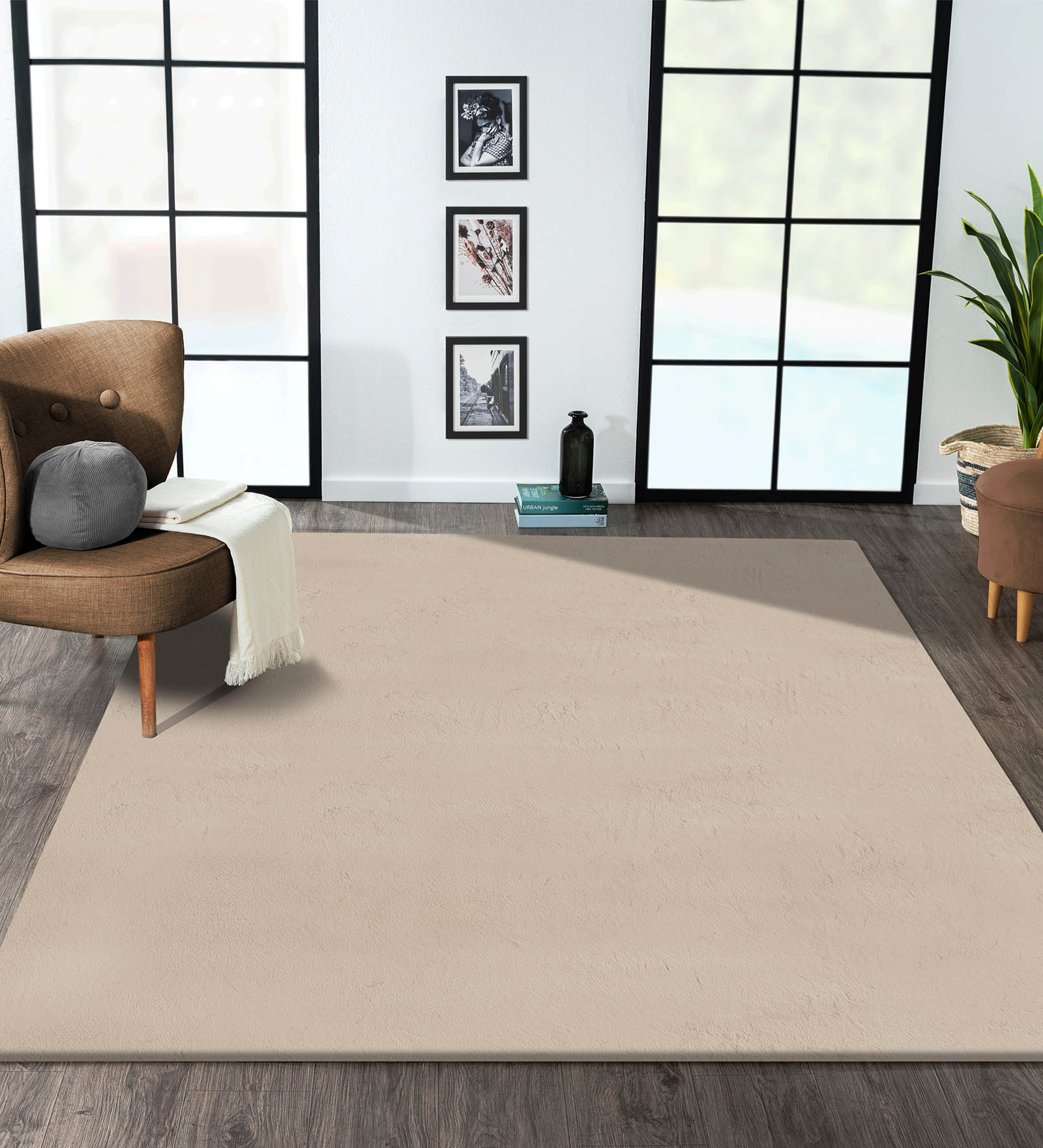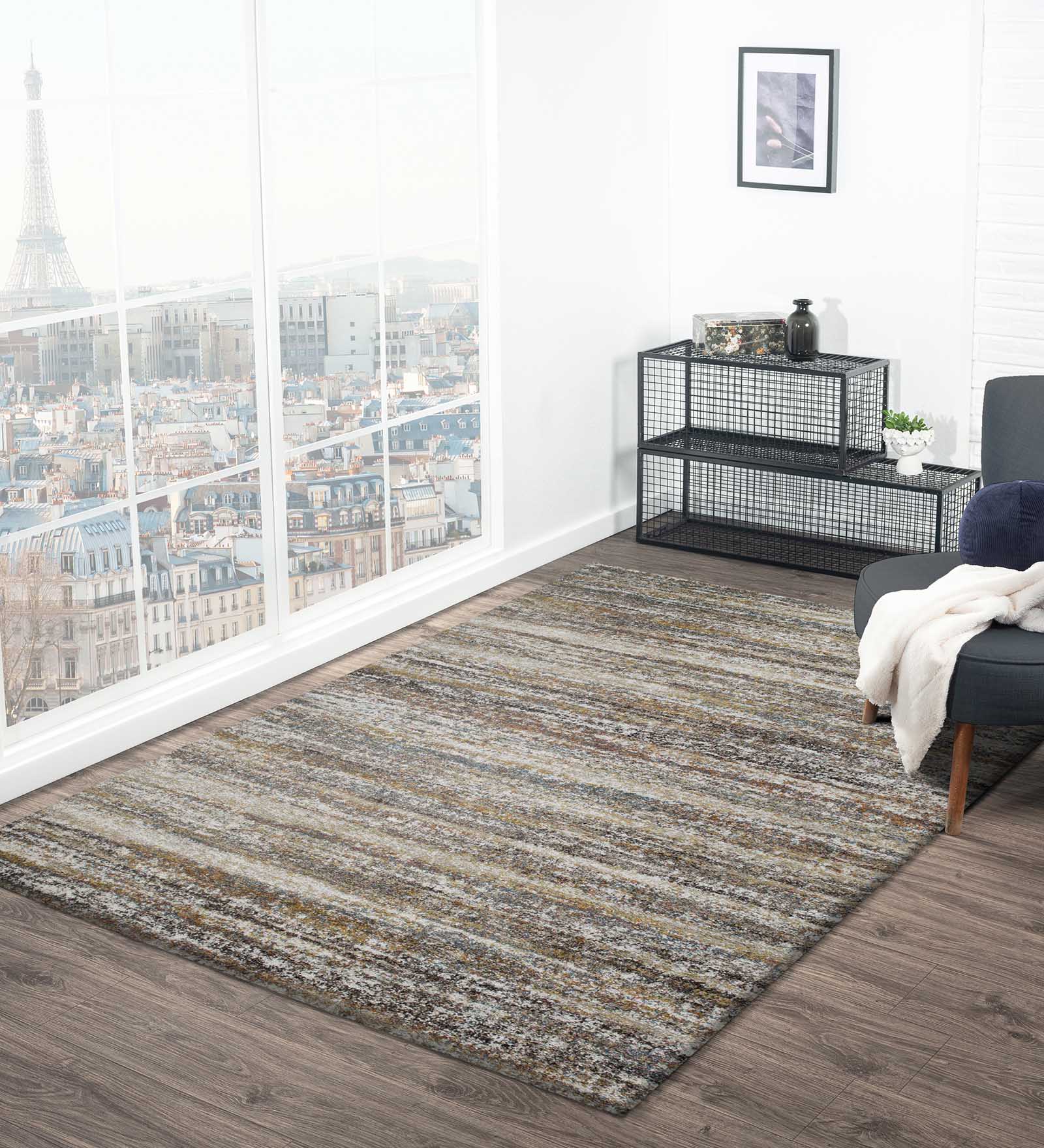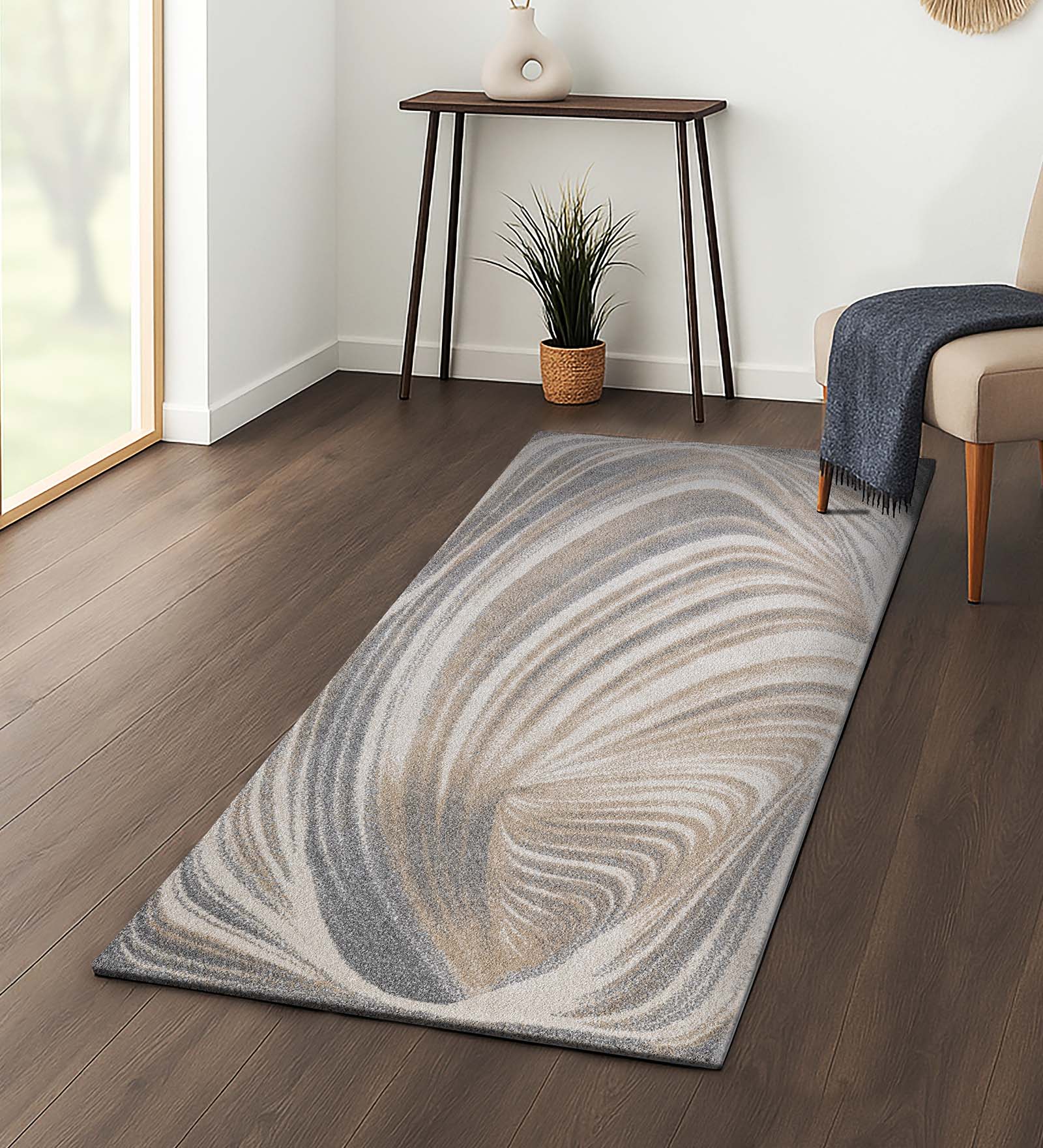 Flamme Abstract Round Shaped Carpet Taupe and Blue