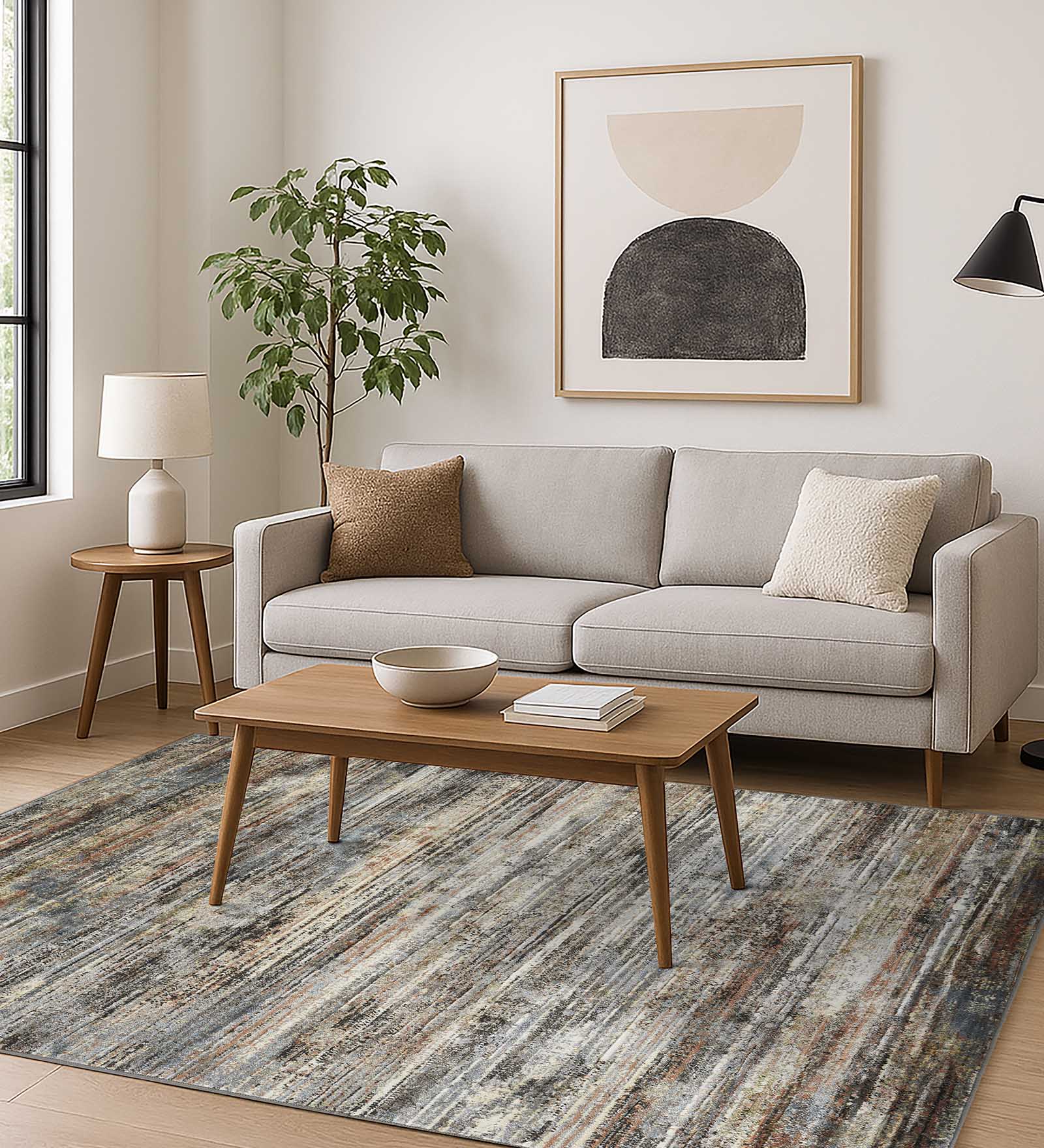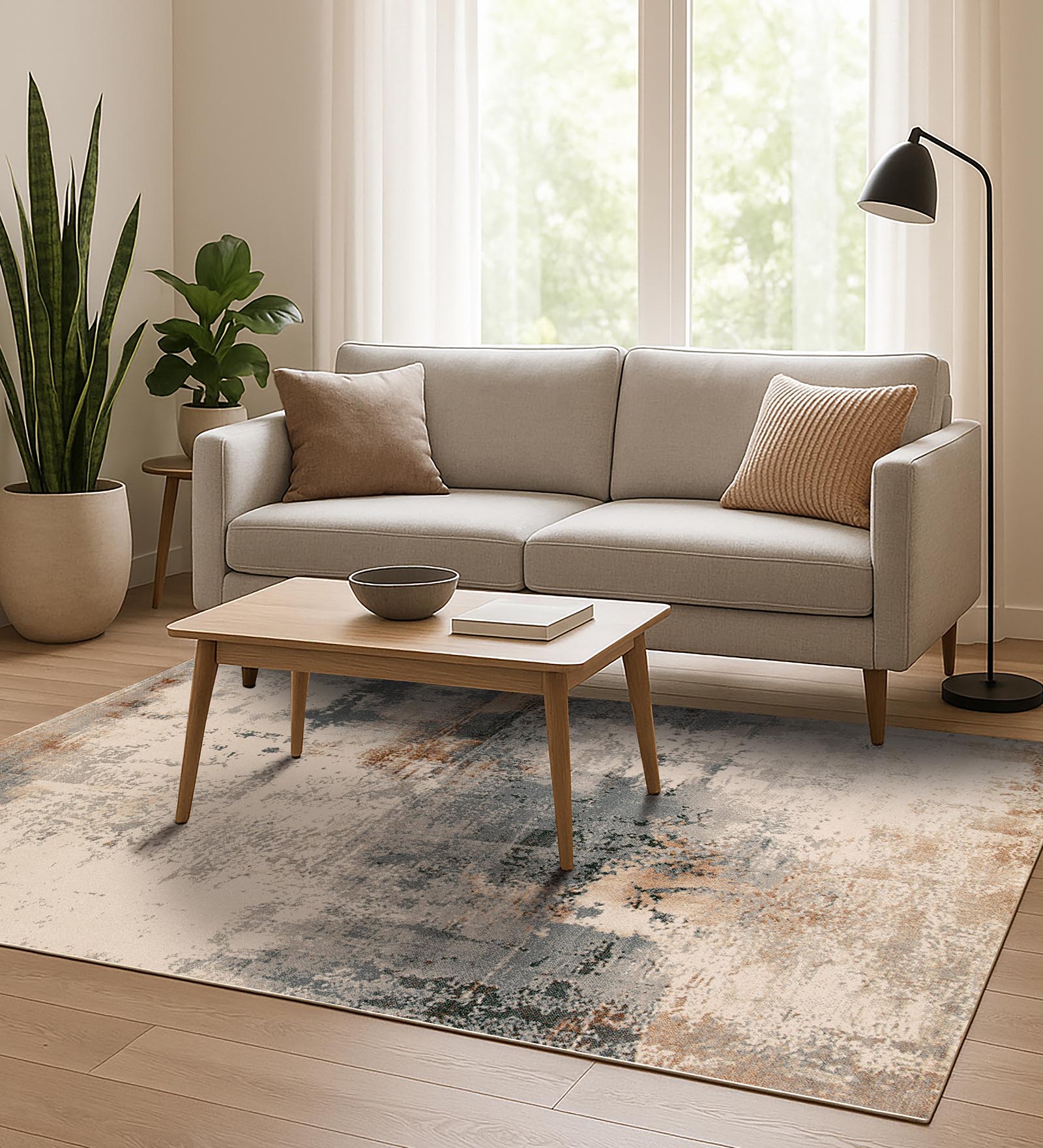 Reverie Abstract Machine Made Carpet Grey and Beige