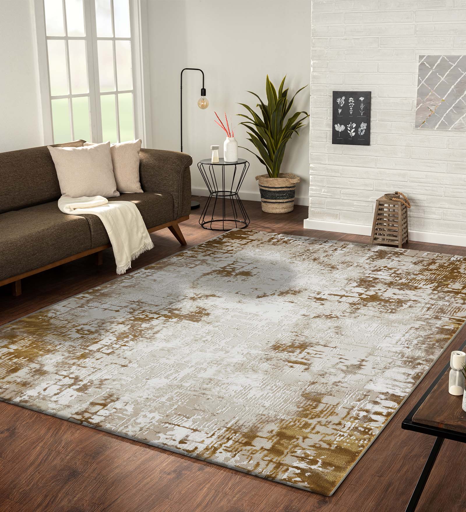 Seher Abstract Machine Made Carpet Beige Gold