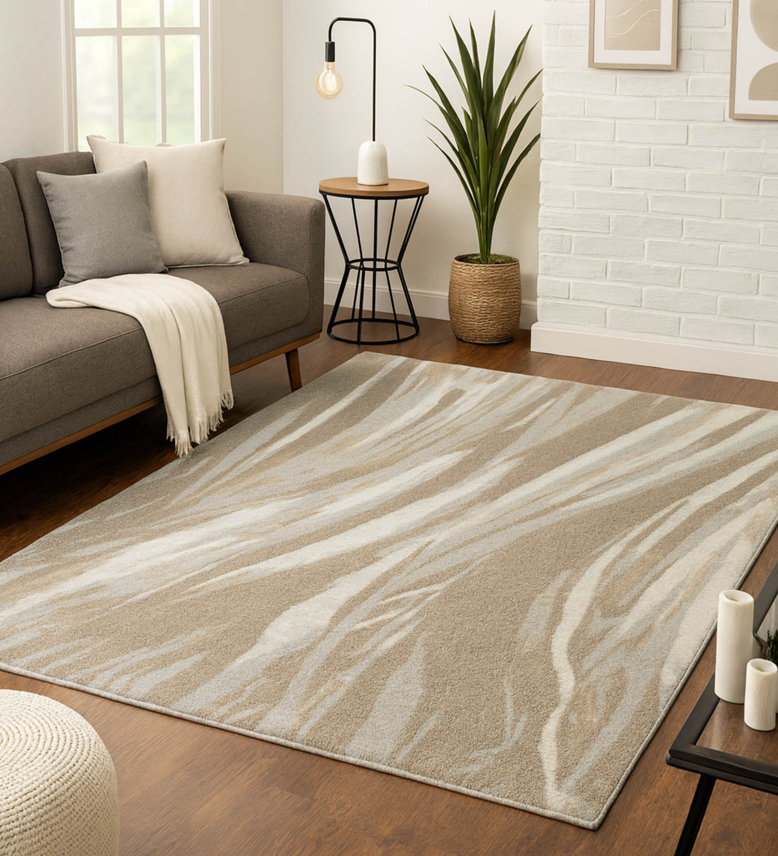 Pine Polyester Abstract Runner Beige