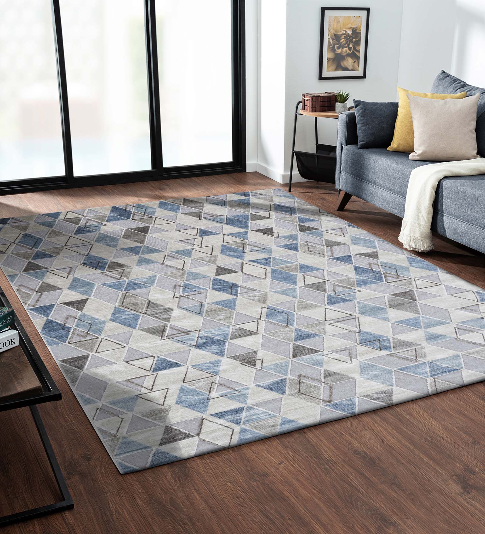 Genova Geometric Carpet Cream and Blue