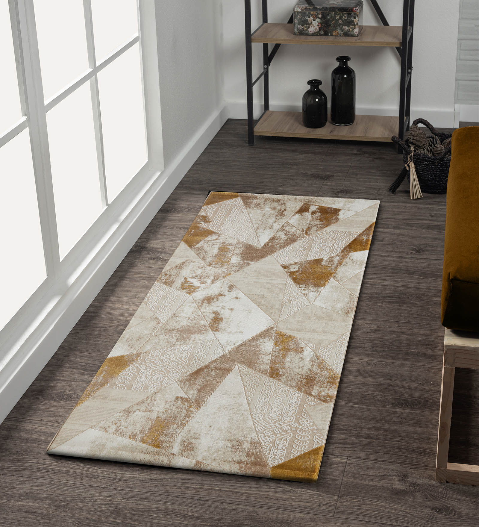 Seher Abstract Bedside Runner Beige Gold
