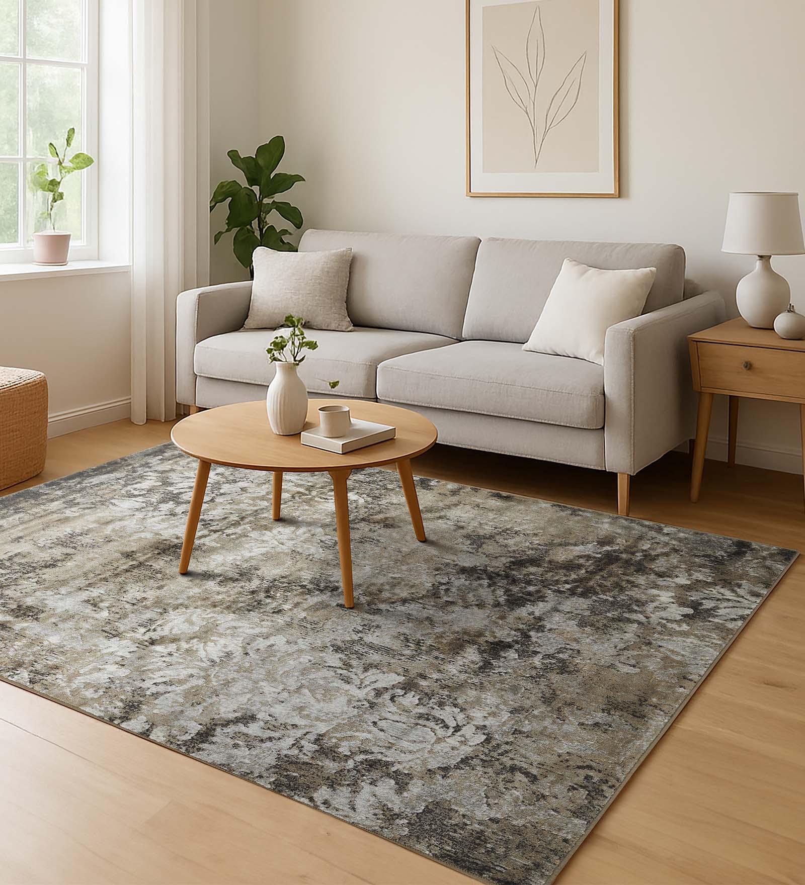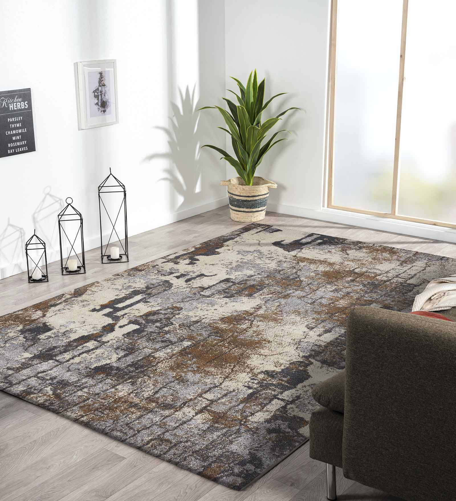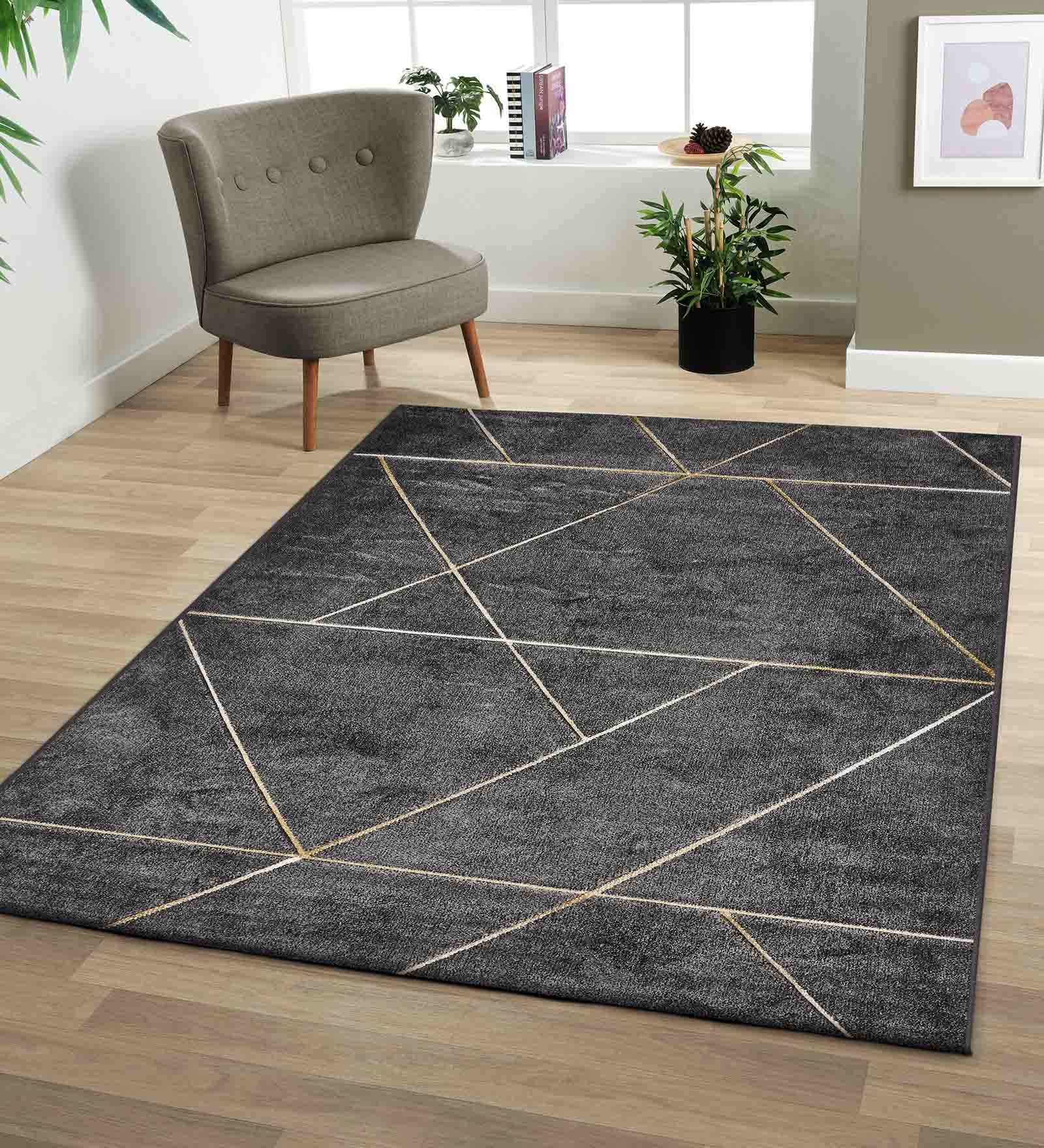 Diamond Geometric Machine Made Carpet Charcoal and Beige