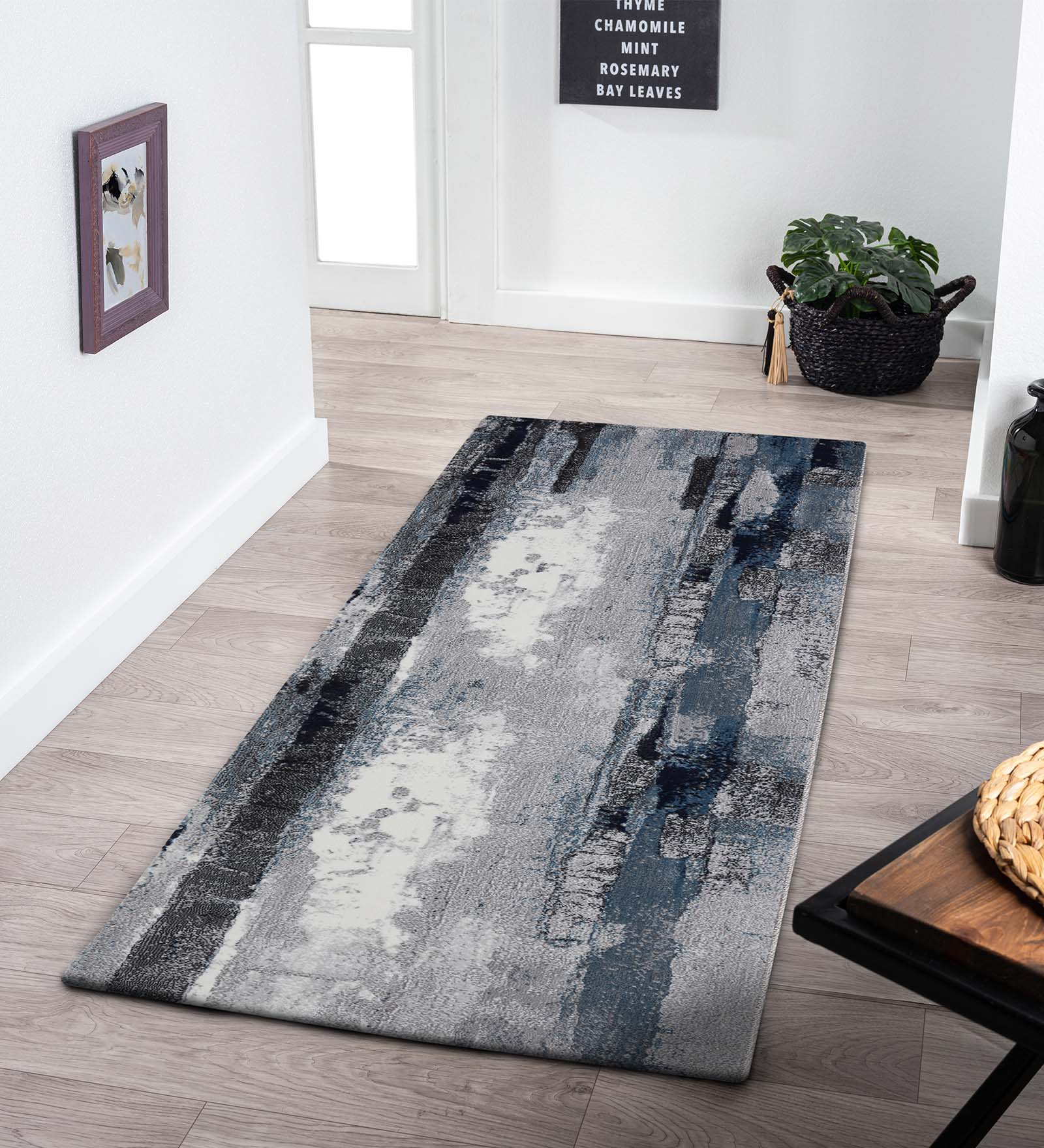 Aquarius Abstract Machine Made Runner Grey and Rust