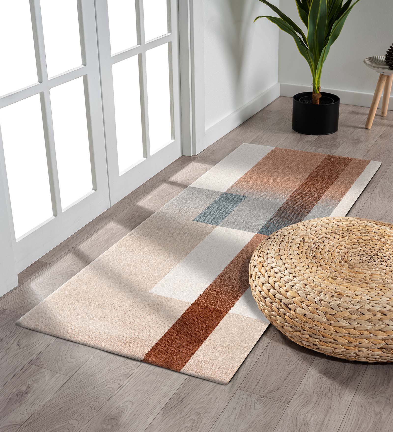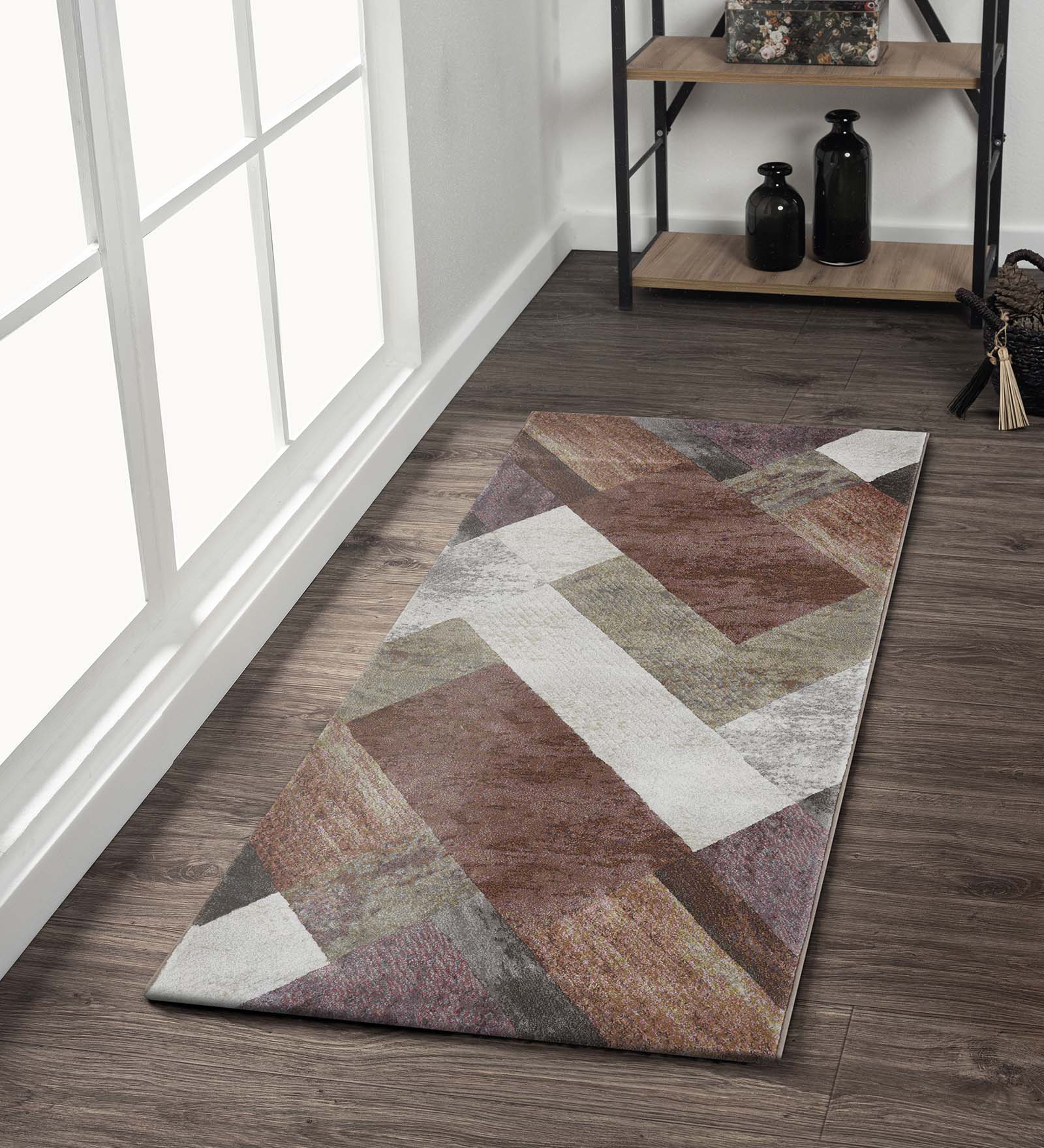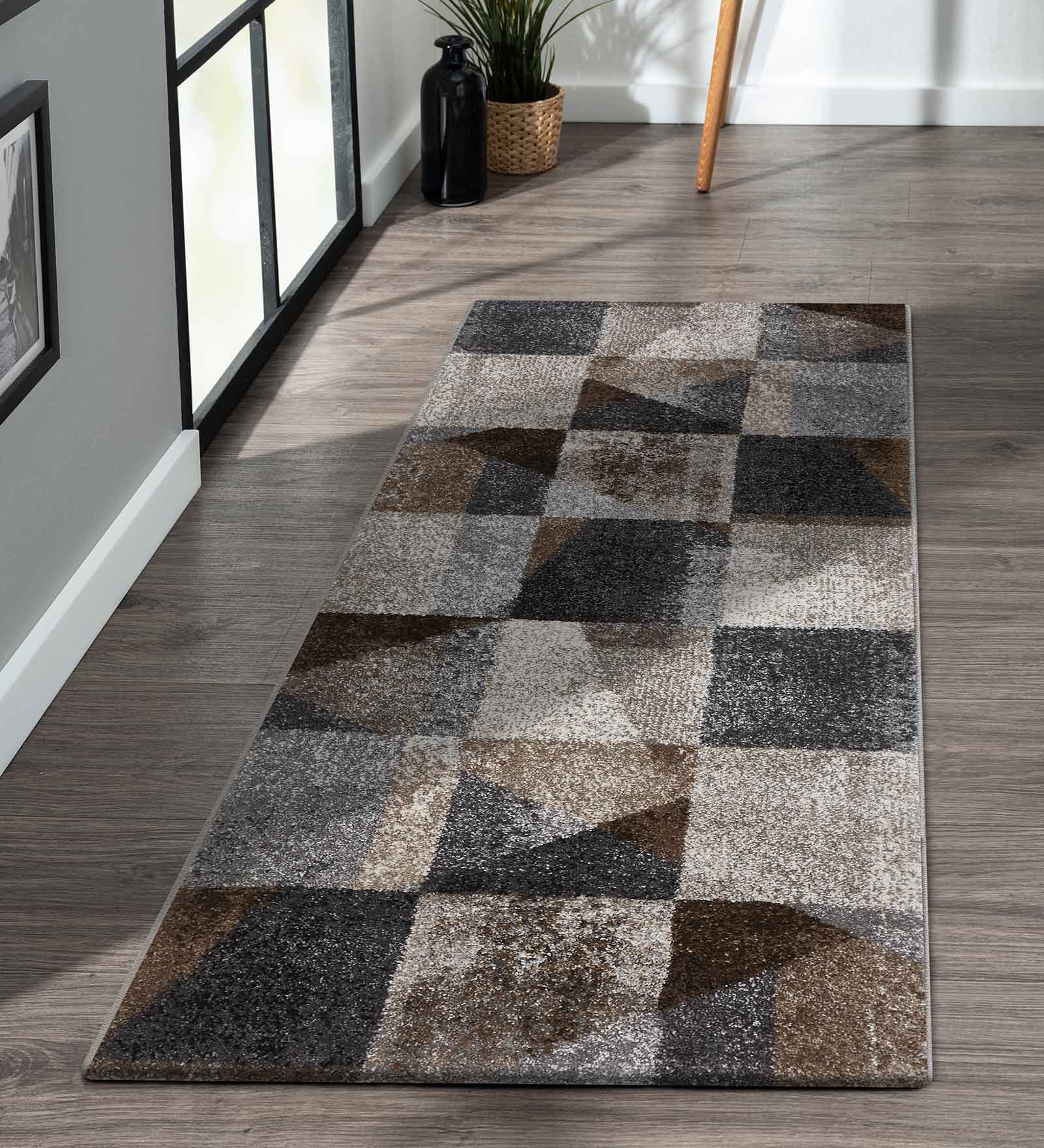 Diamond Polypropylene Geometric Runner Brown and Grey