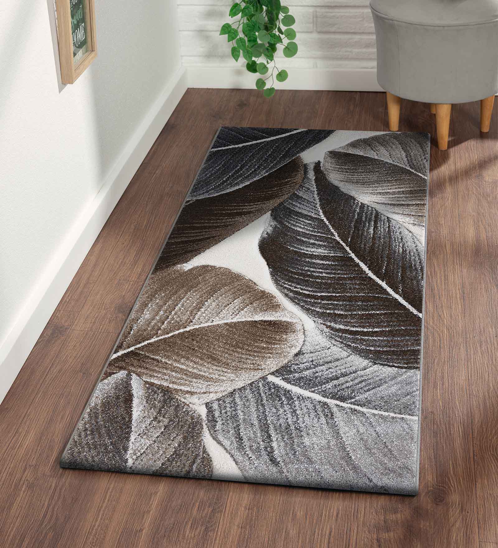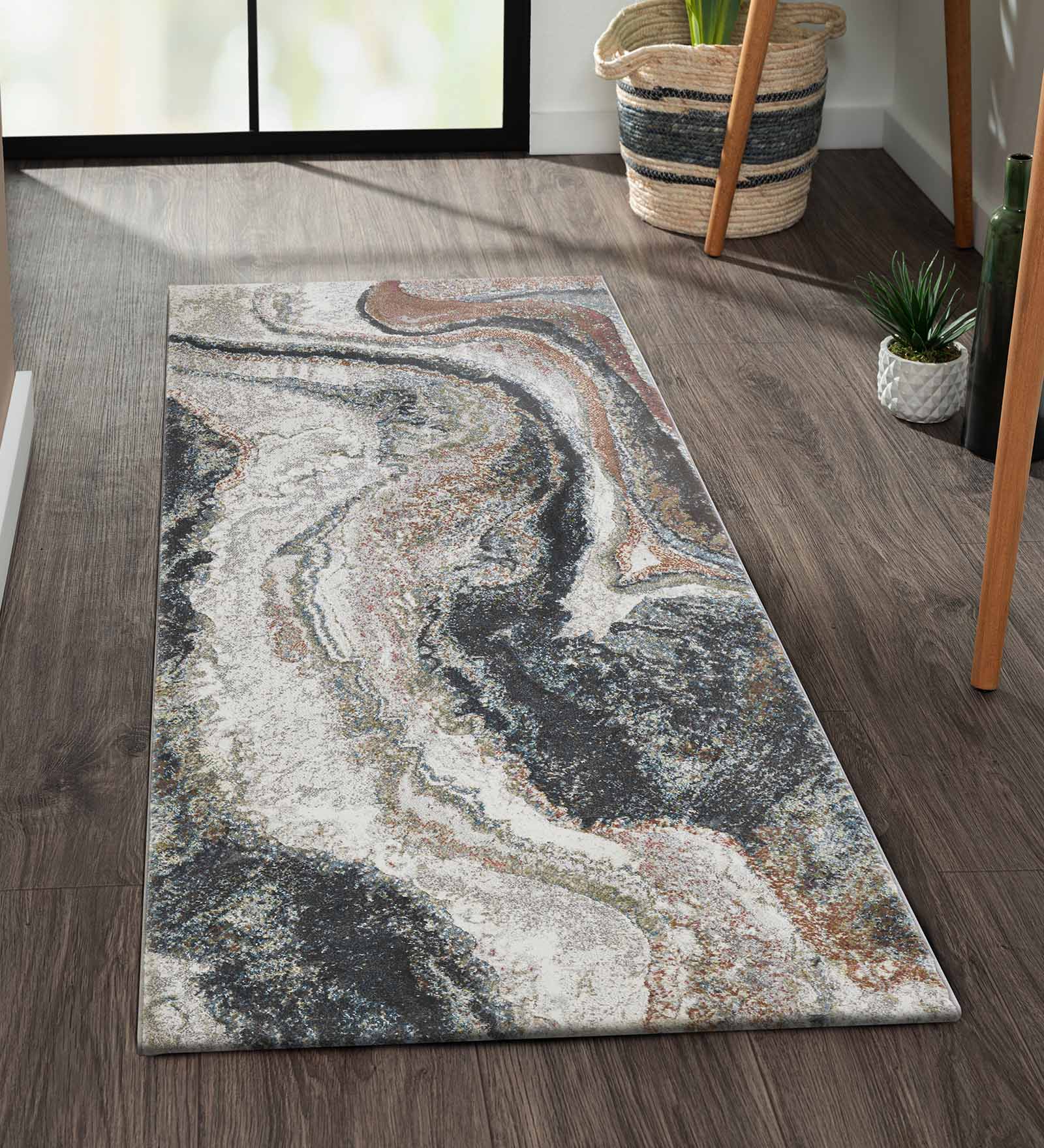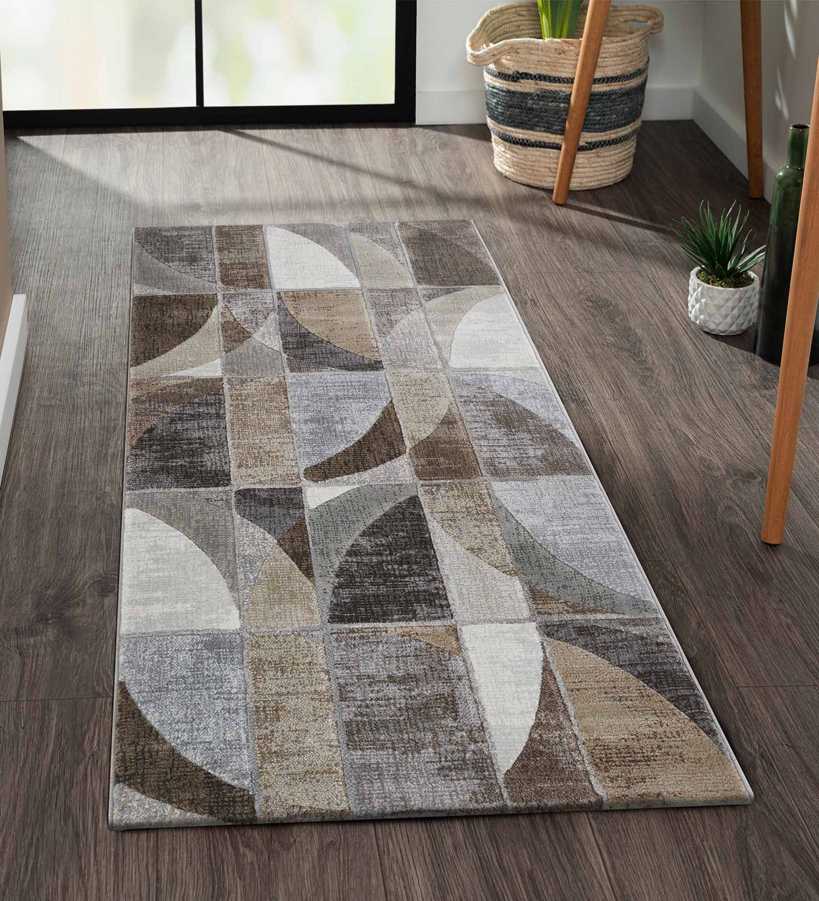 Aquarius Abstract Machine Made Runner Grey and Brown