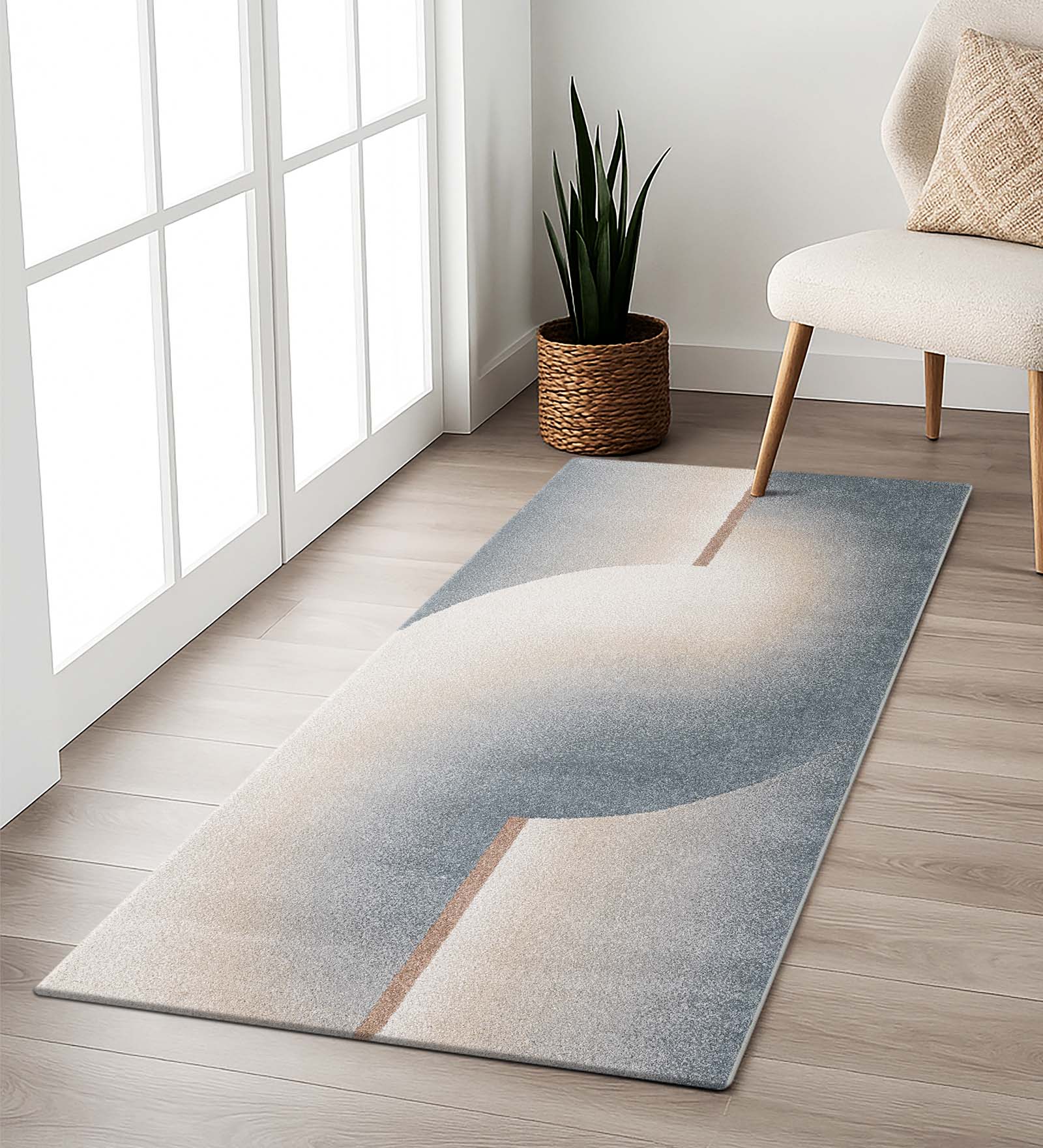 Aquarius Abstract Machine Made Runner Cream and D Grey