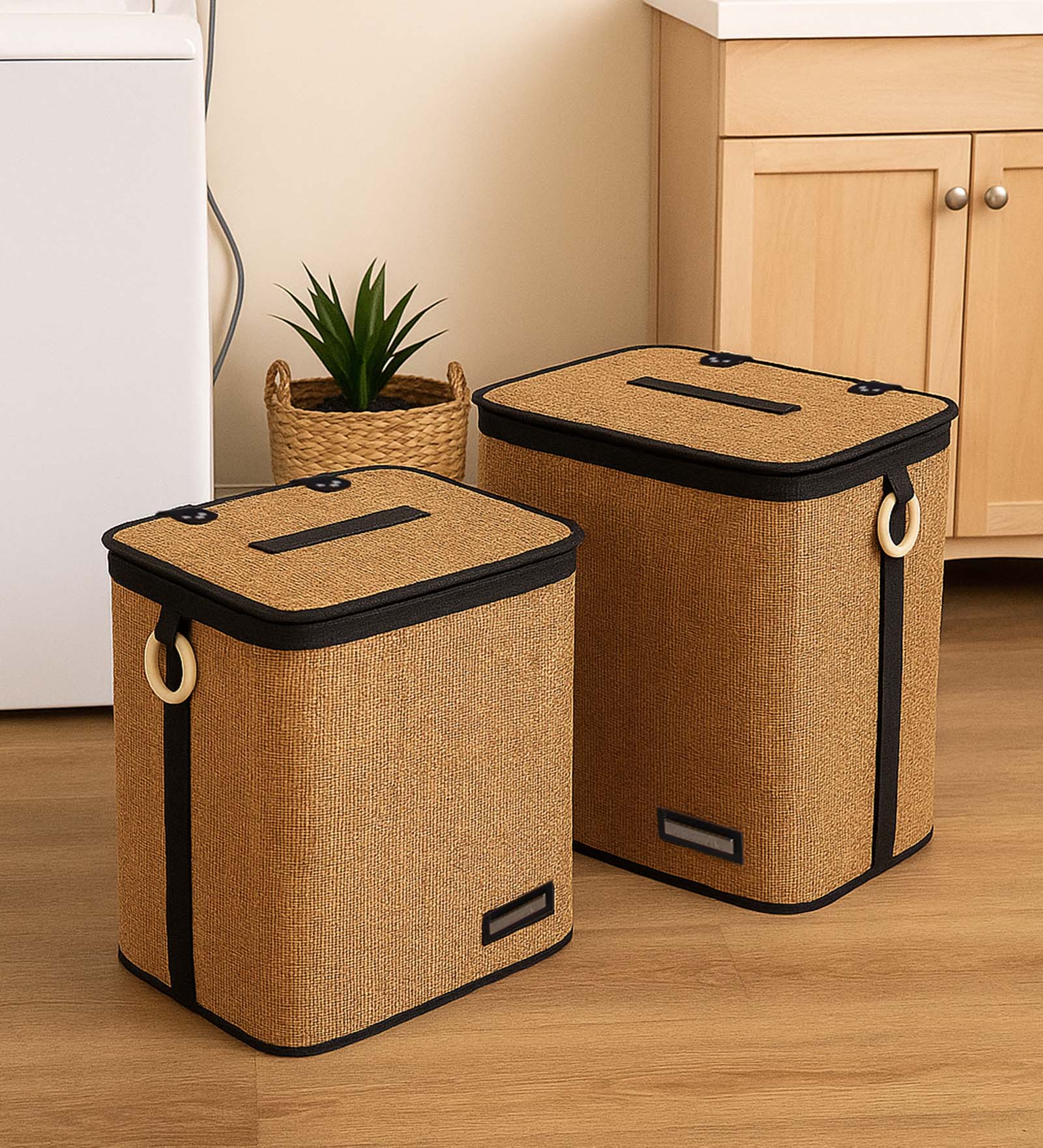 Sophia Set of 2 Laundry Basket Storage Brown and Black