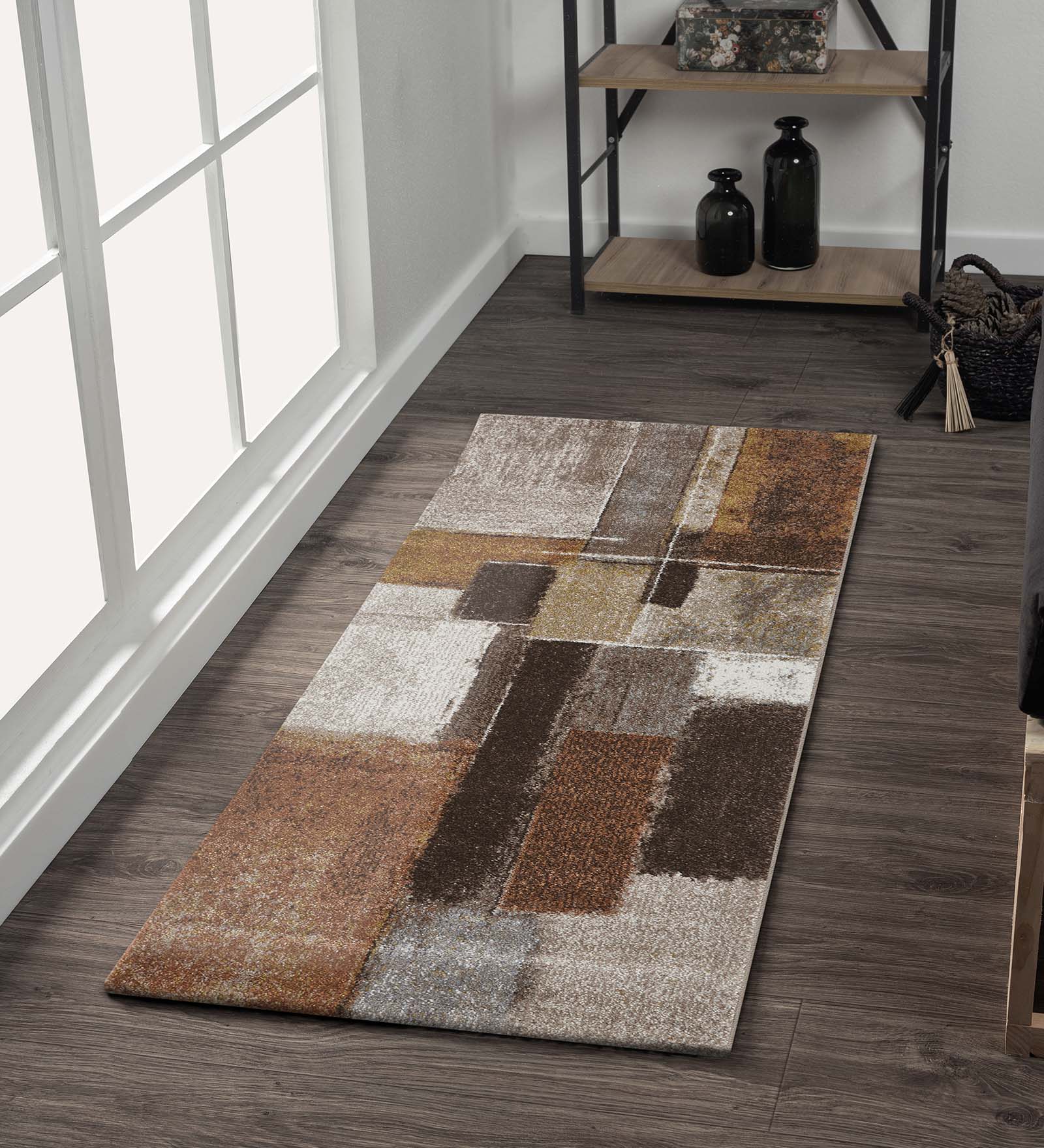 Diamond Polypropylene Abstract Runner Brown and Cream