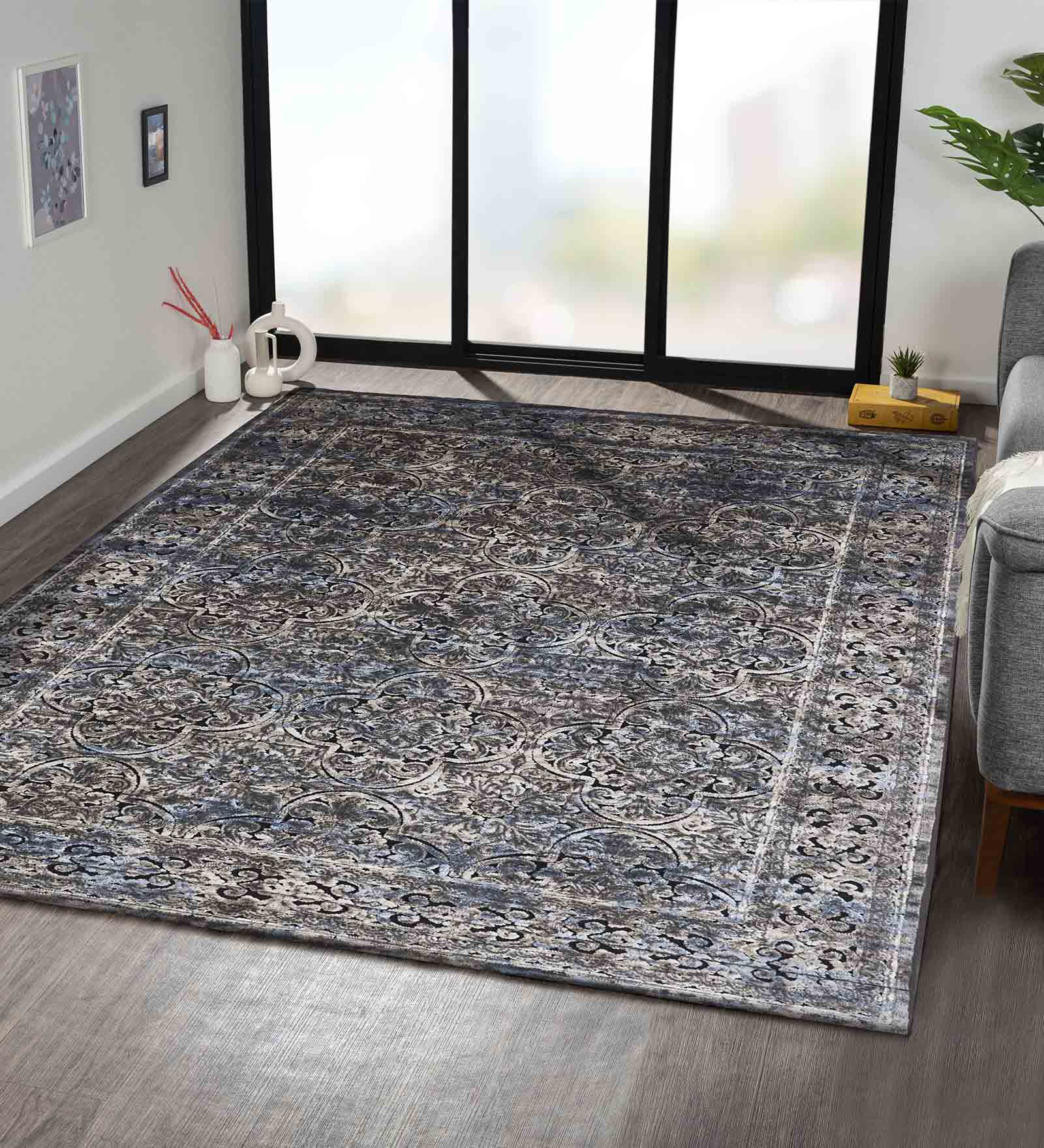 Tuscany Polyester Classical Carpet Grey