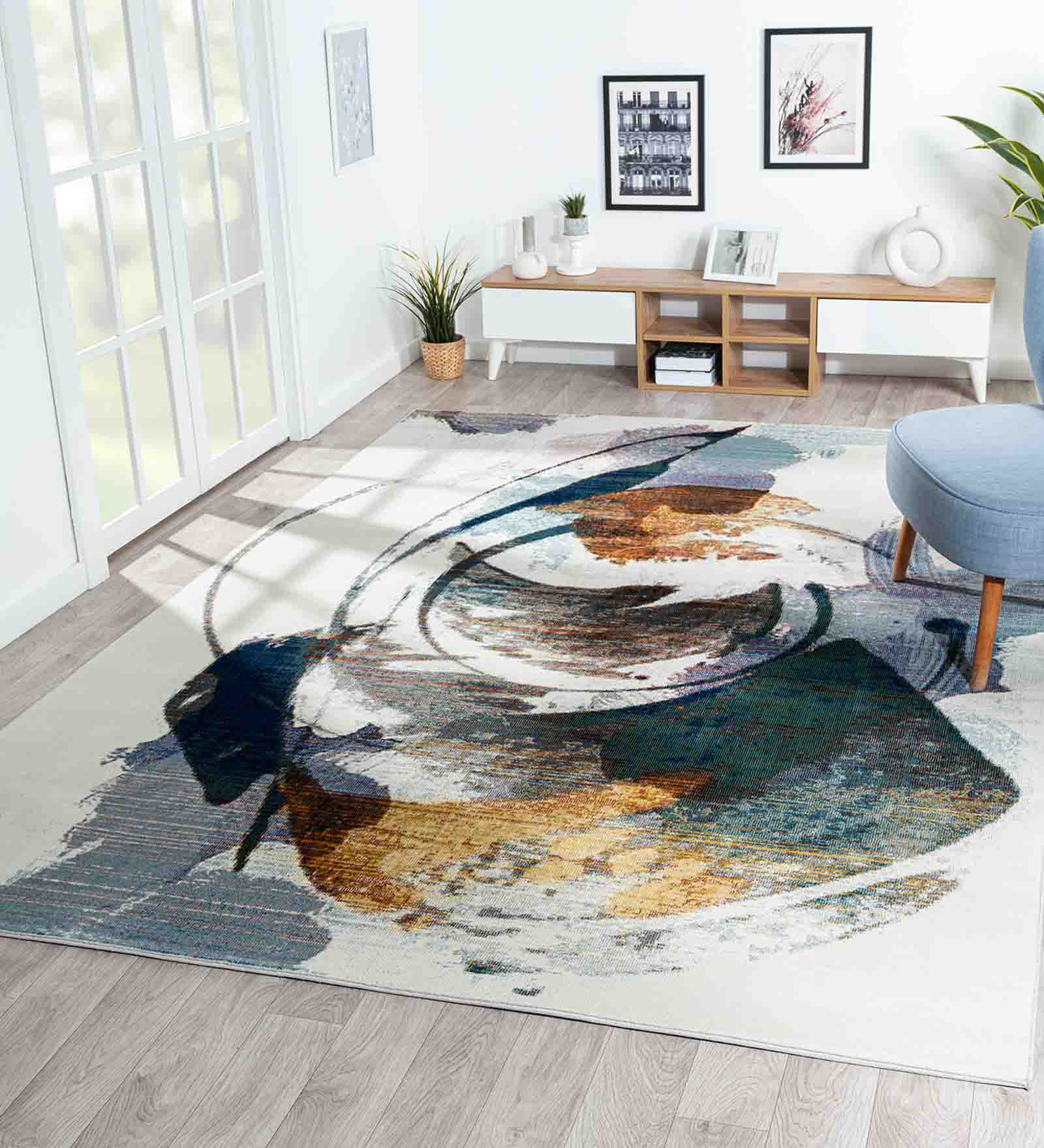 Alan Polypropylene Floral Runner Blue and L.Grey