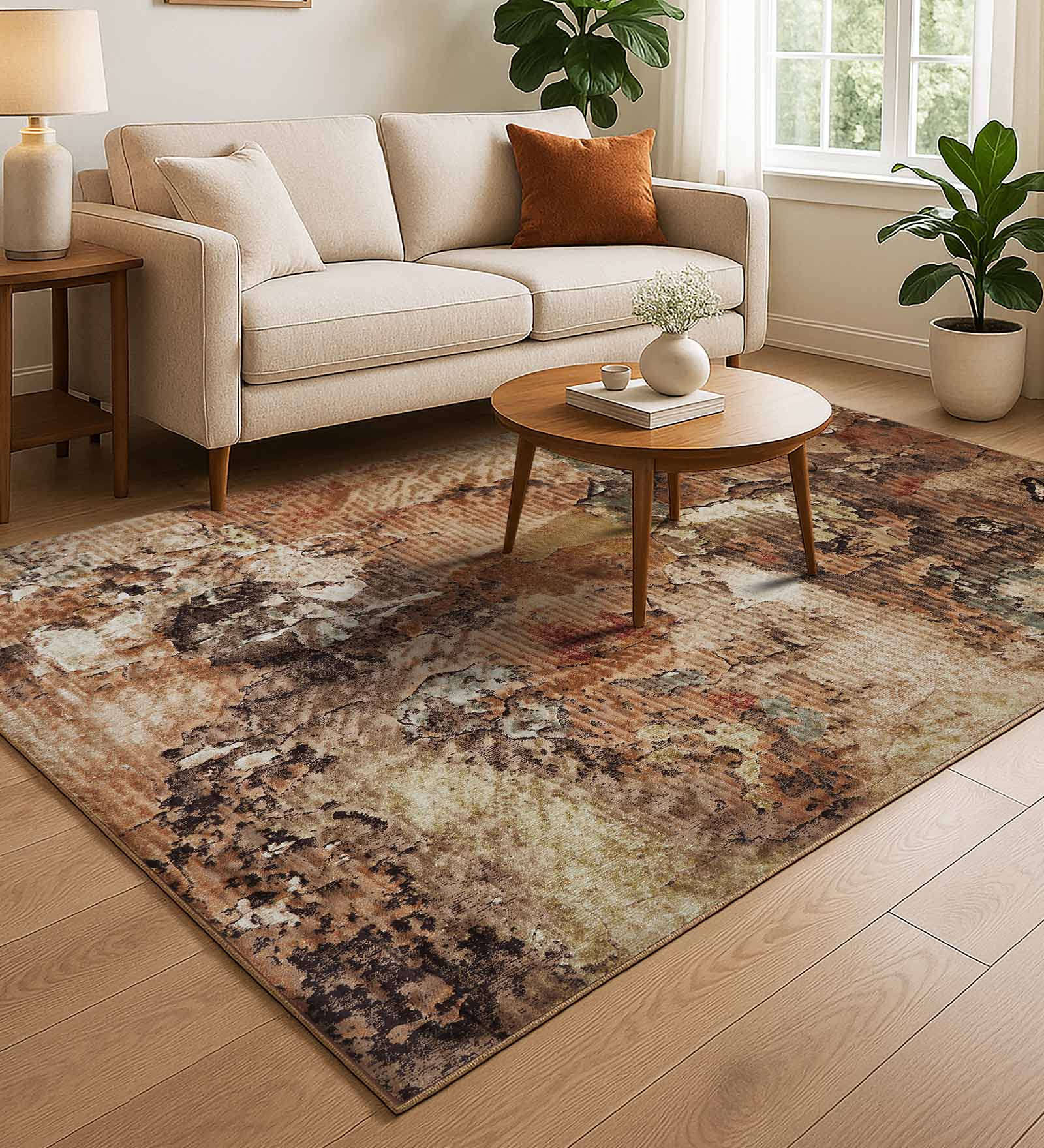 Reverie Abstract Machine Made Carpet Brown and Grey