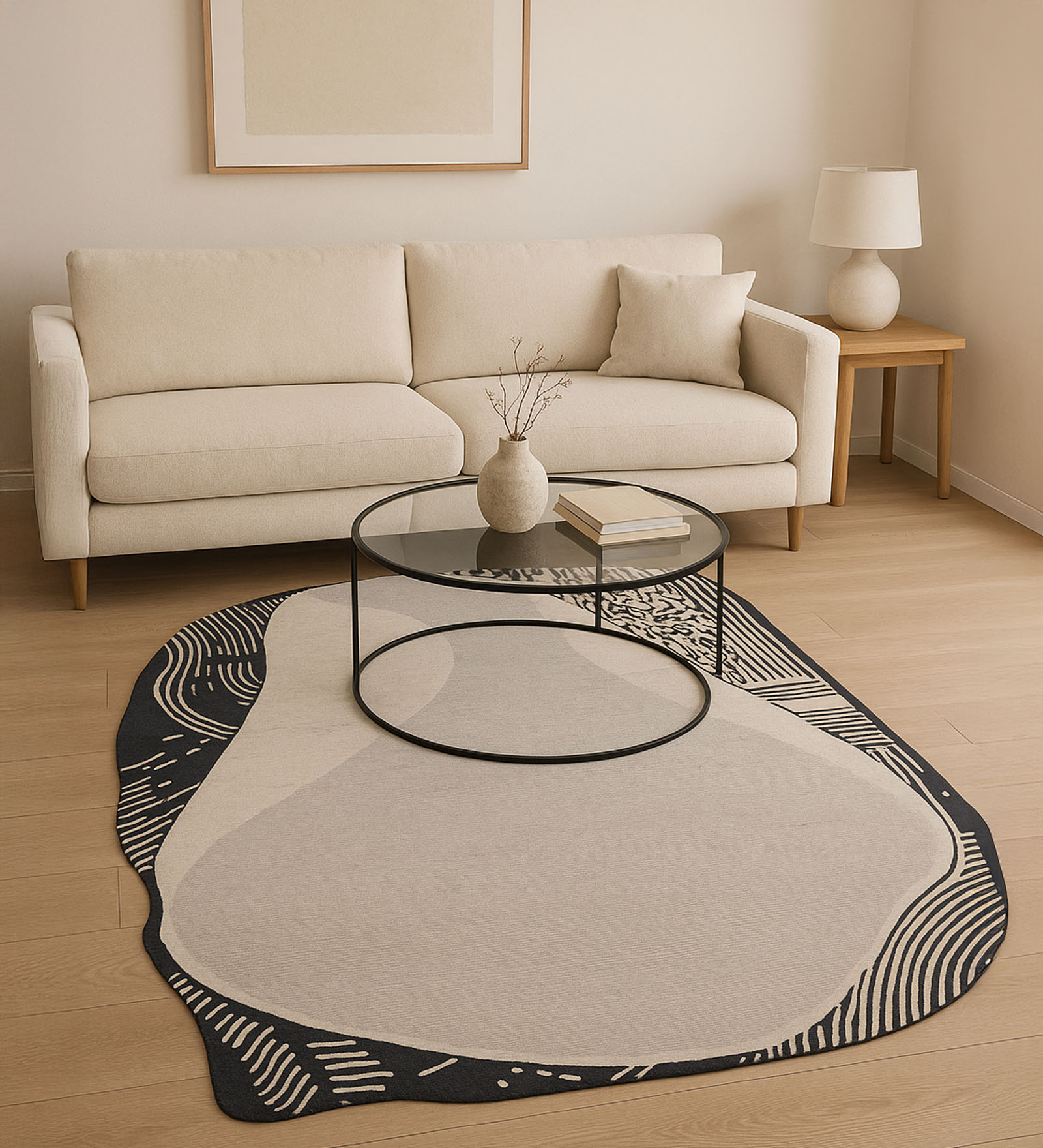 Shapescape Polyester Abstract Carpet Cream