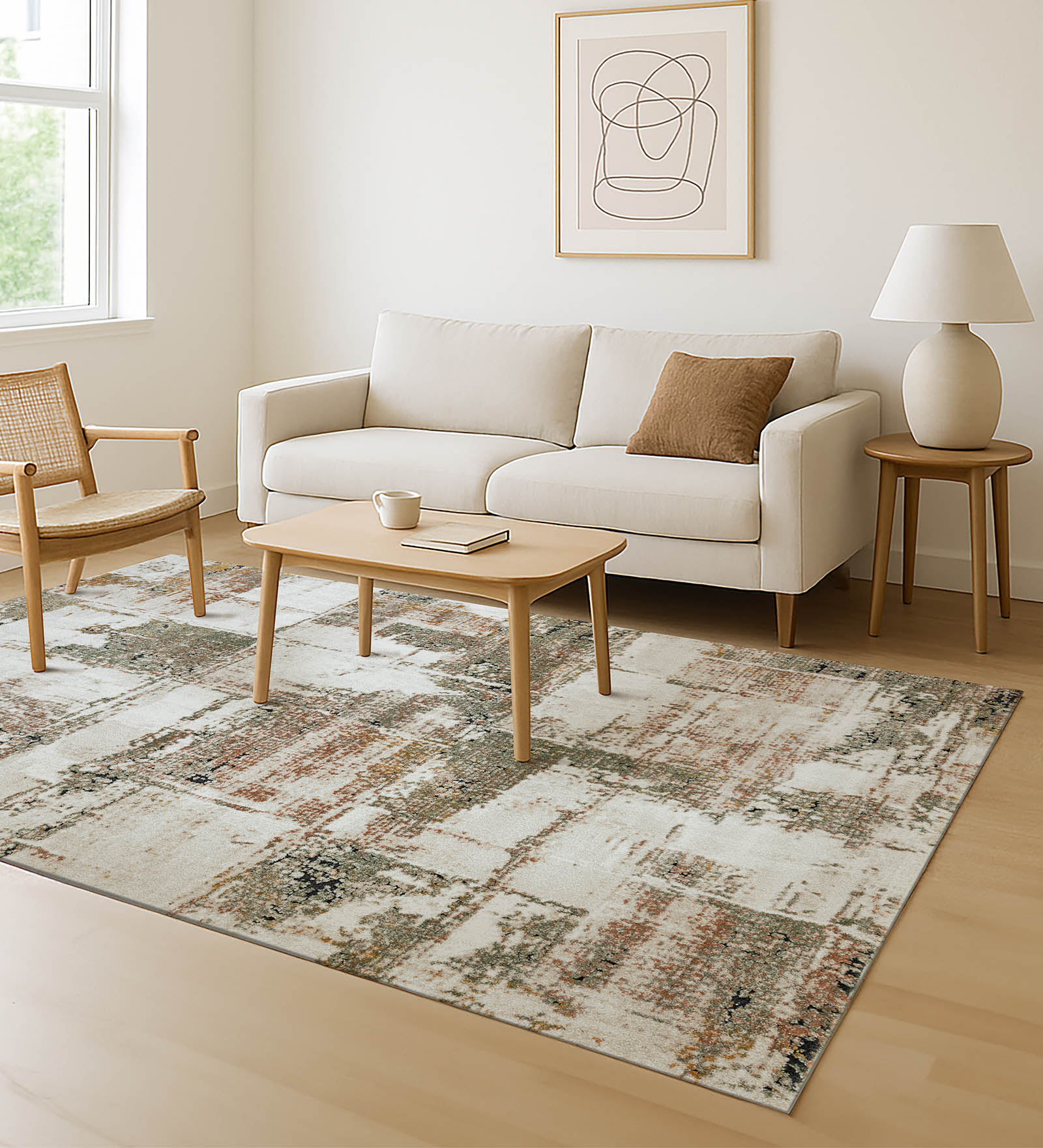 Pine Polyester Abstract Carpet Cream