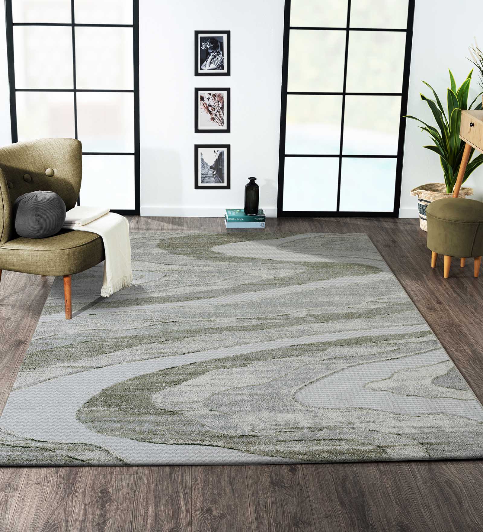 Jura Abstract Carpet Olive and Charcoal