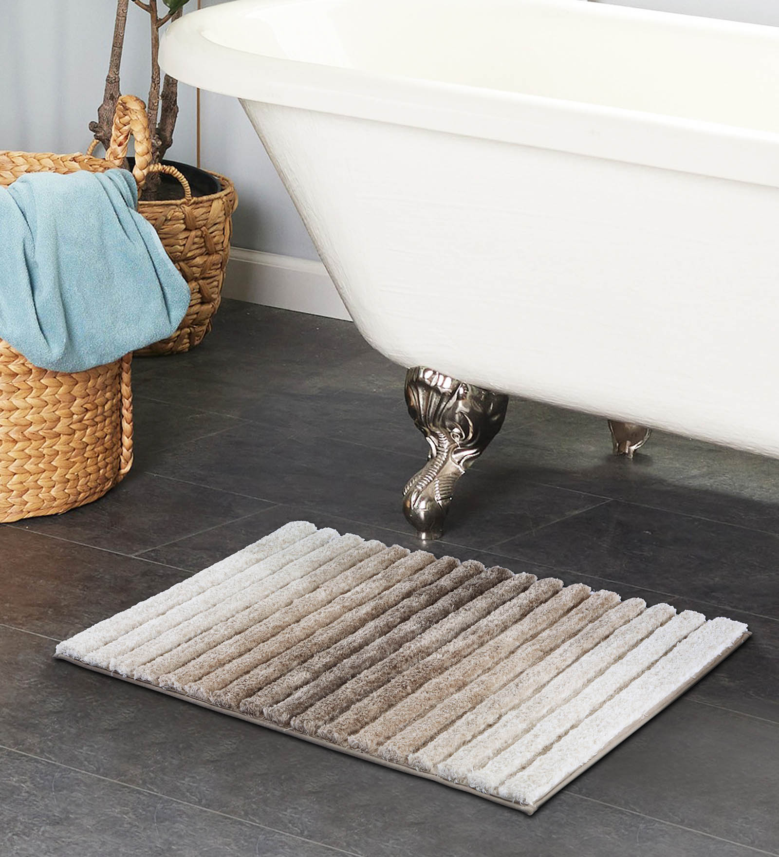 Hermosa Quick Dry Anti Skid Bath Mat Beige White