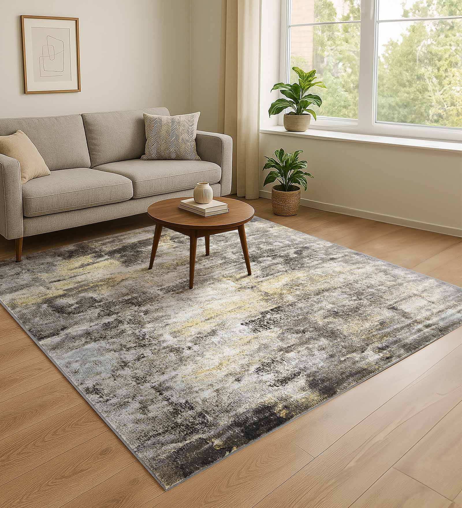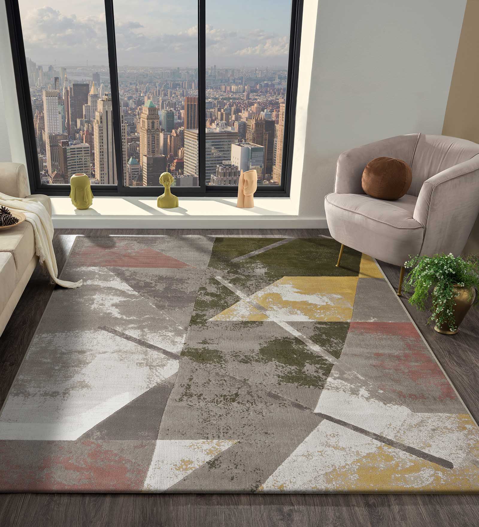 Gul Polyester Abstract Carpet Grey