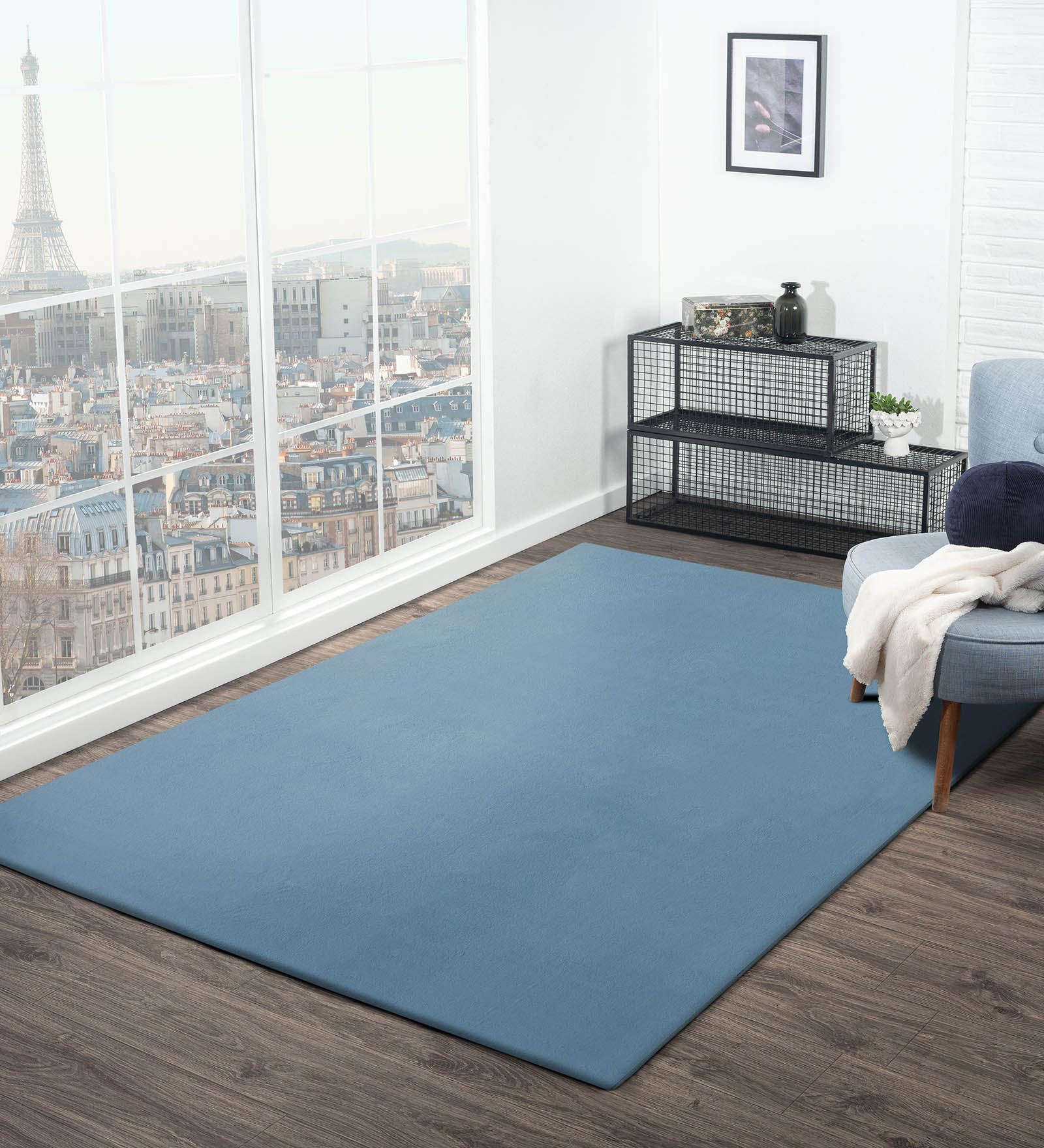 New Oslo Rabit Fur Carpet Blue