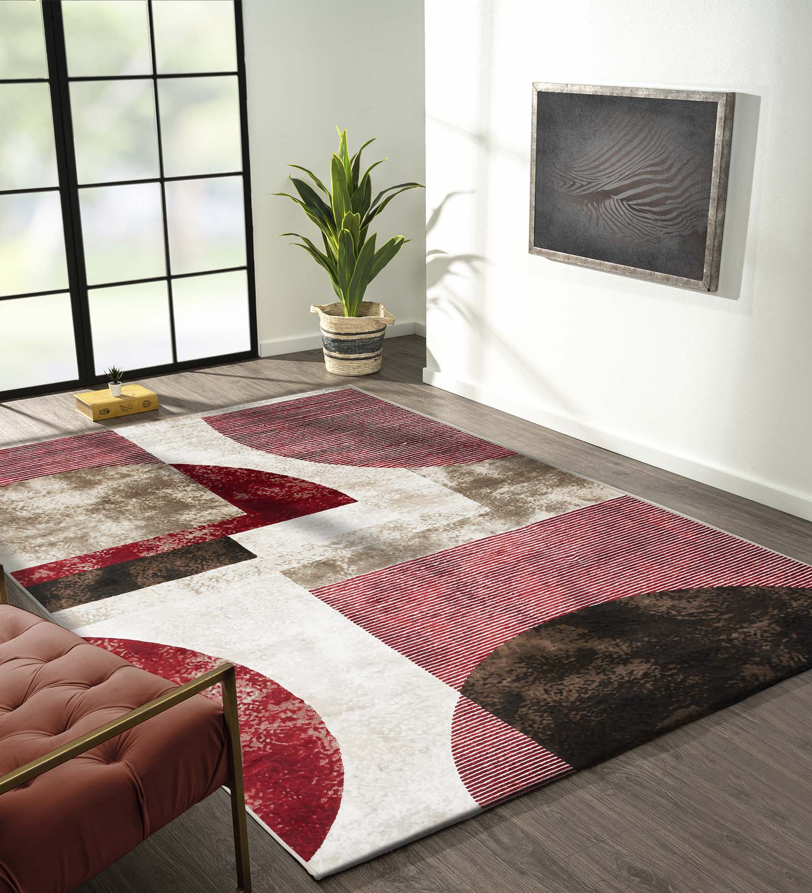 Flamme Geometric Carpet Red Brown