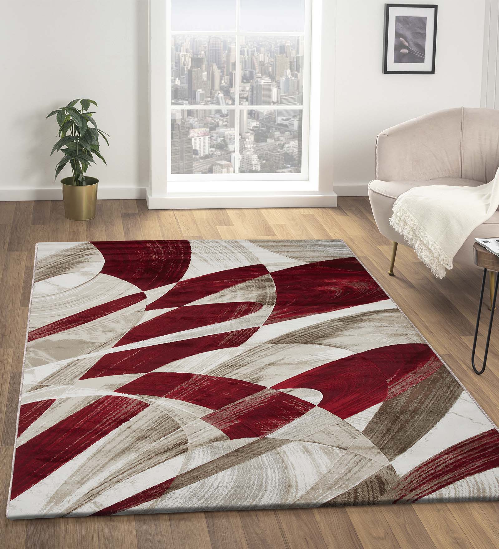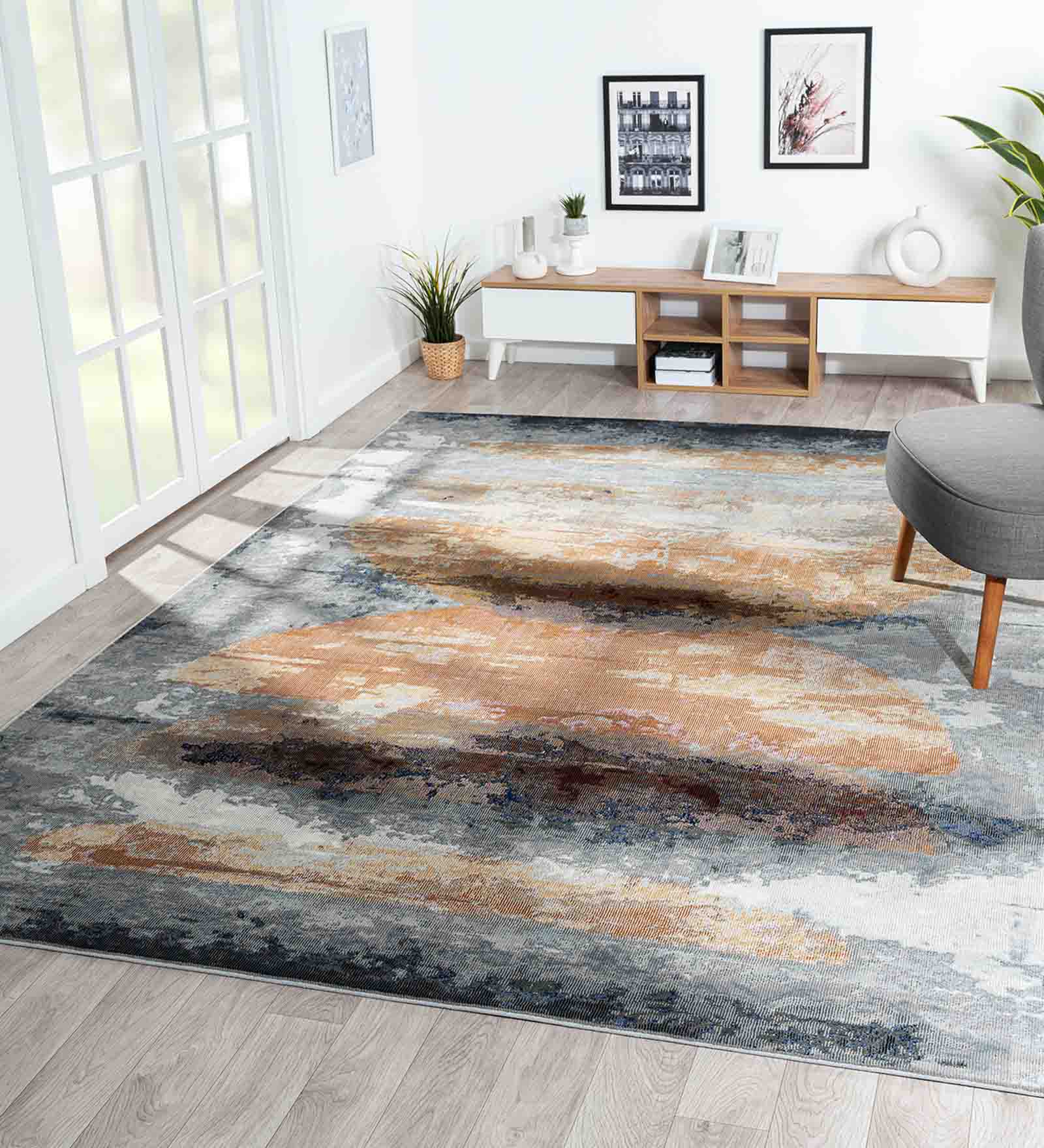 Aquarius Abstract Machine Made Carpet Cream and Rust