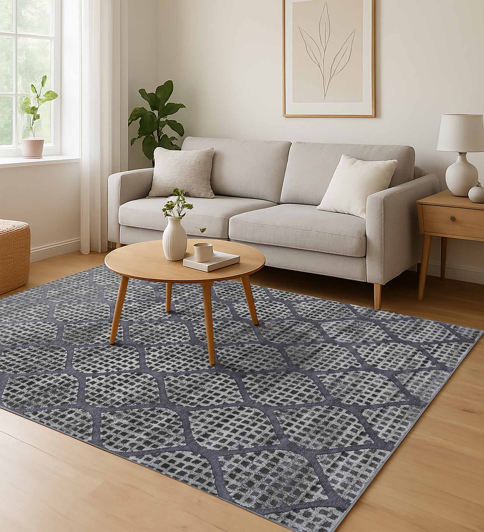 Diamond Geometric Machine Made Carpet Charcoal and Beige