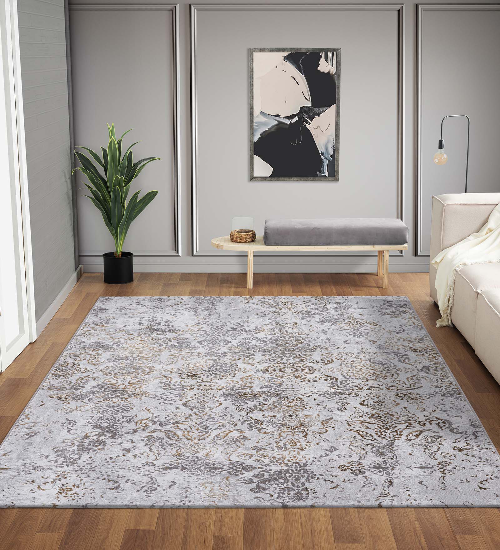 Aquarius Abstract Machine Made Carpet Grey and Brown