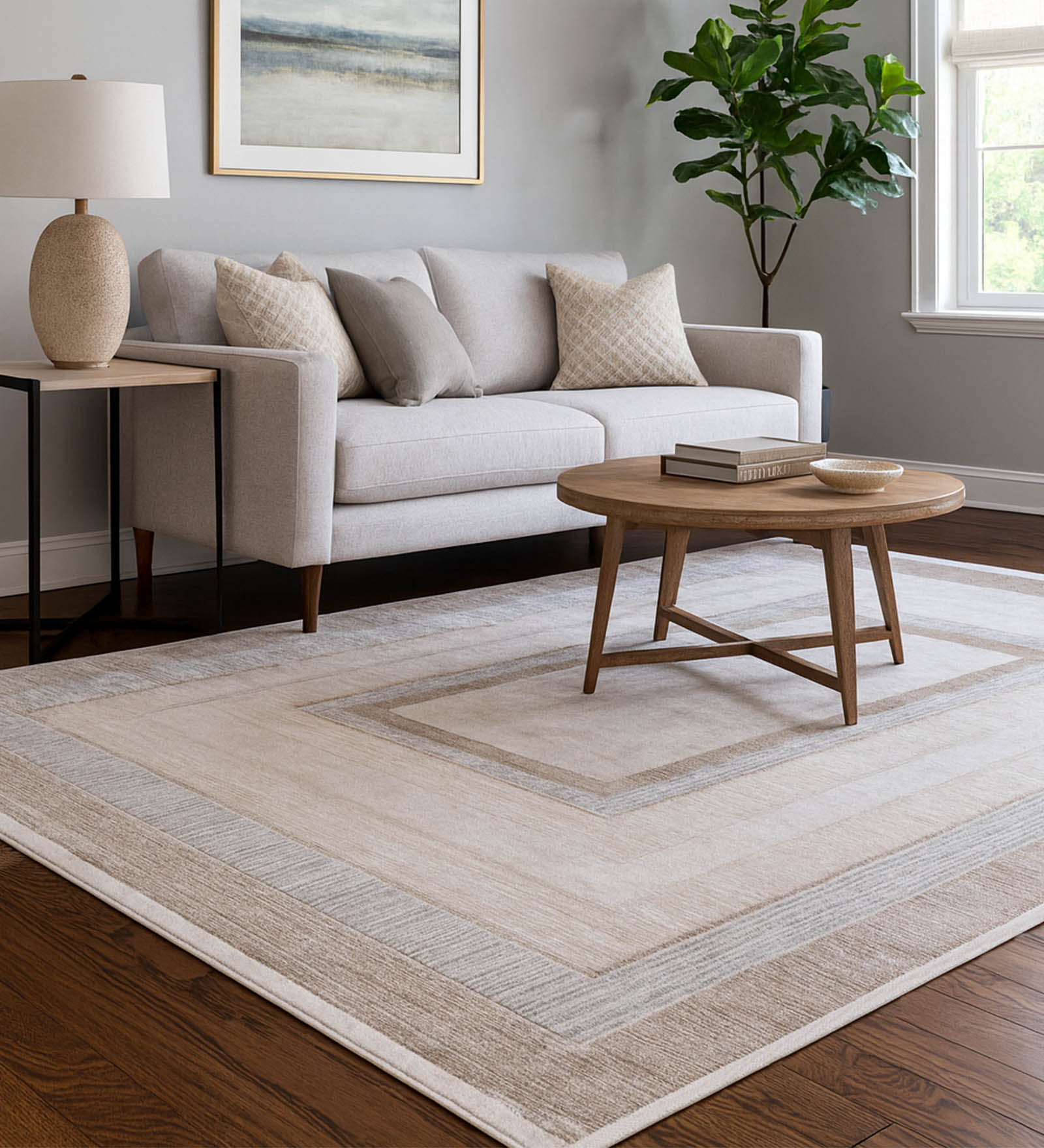 Nepal Neo Classical Machine Made Carpet Cream and Rust