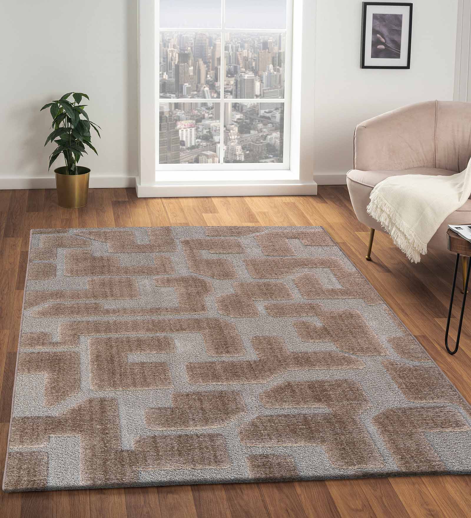 Platinum Abstract Machine Made Carpet Grey and Rust