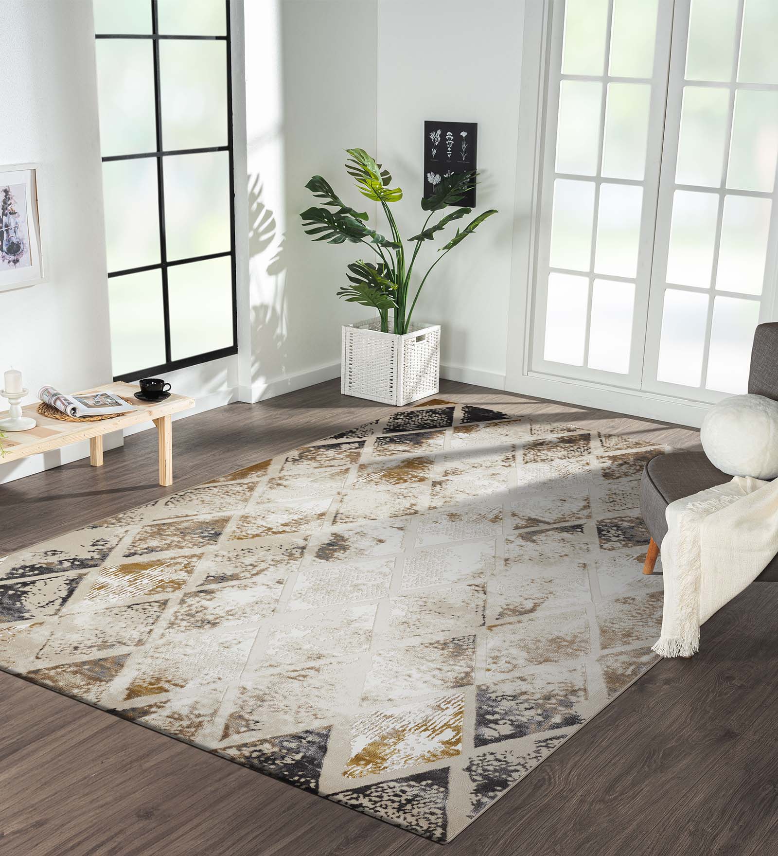 Diamond Abstract Machine Made Carpet Beige