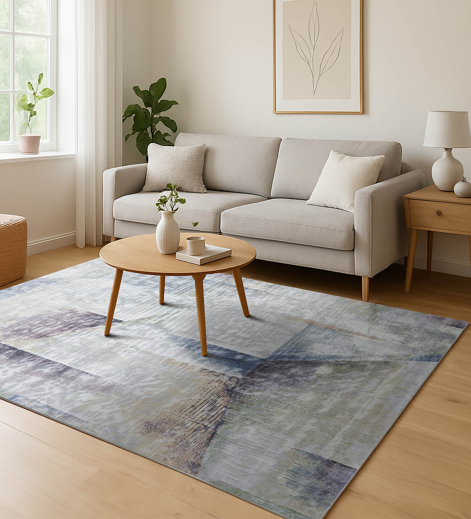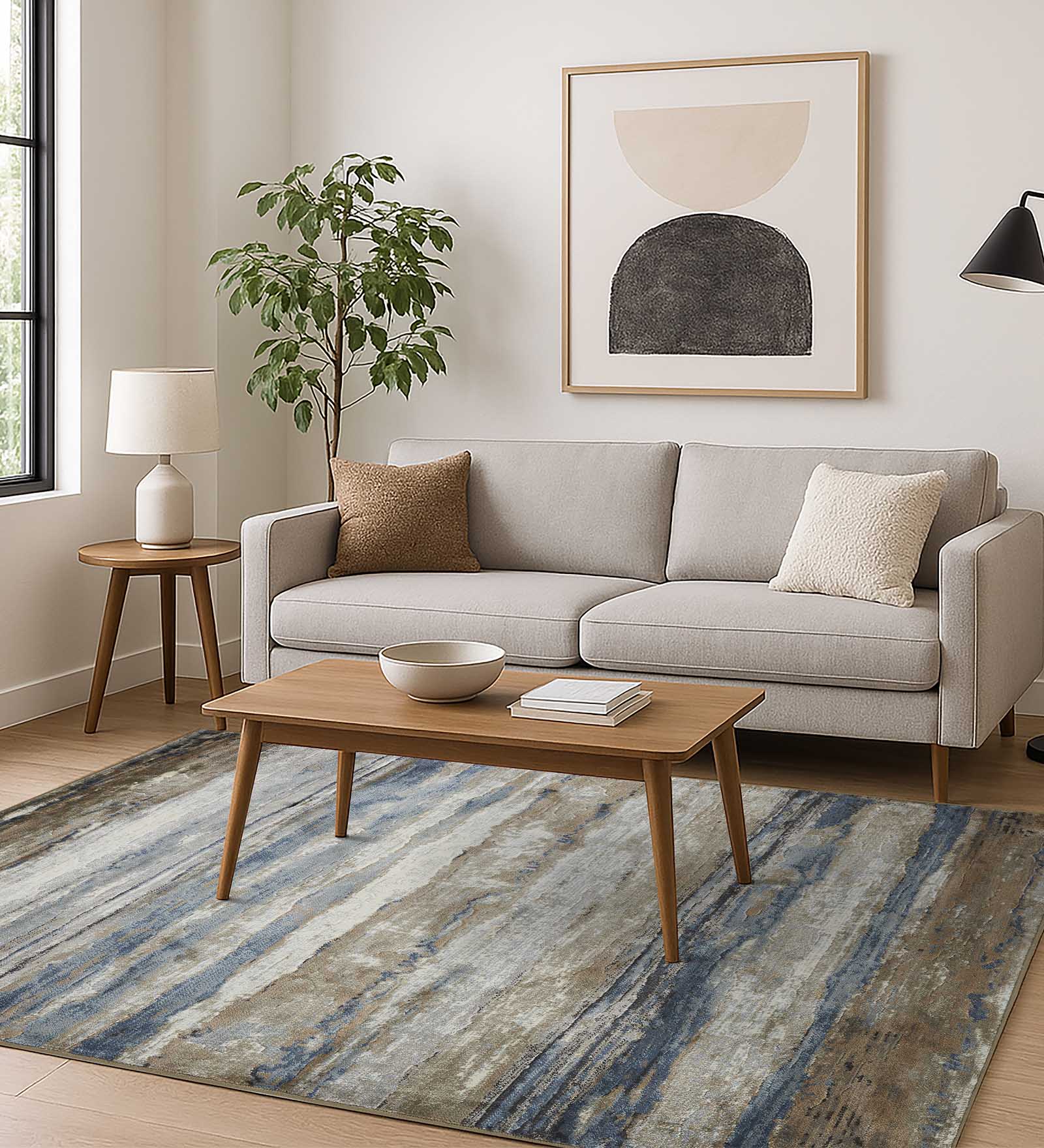 Alan Polypropylene Geometric Carpet Blue and Cream